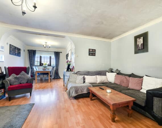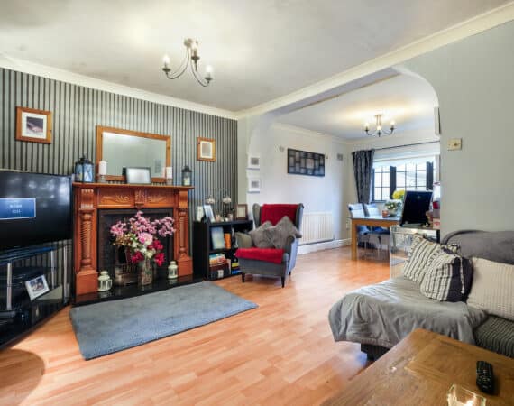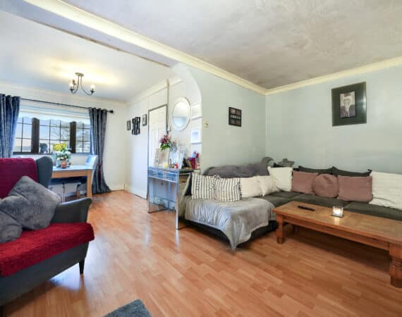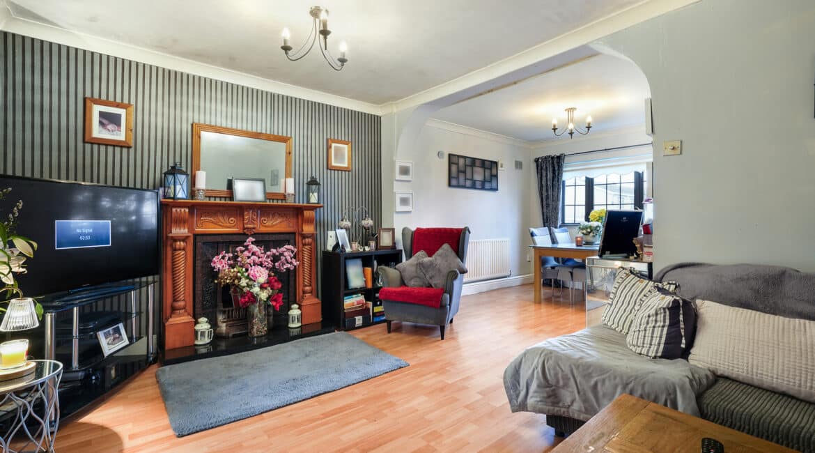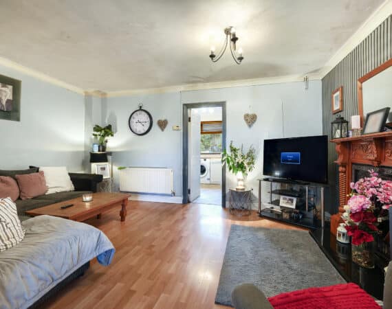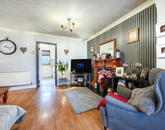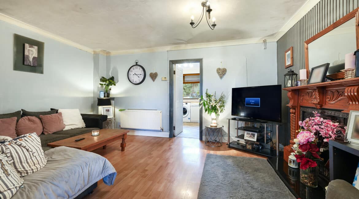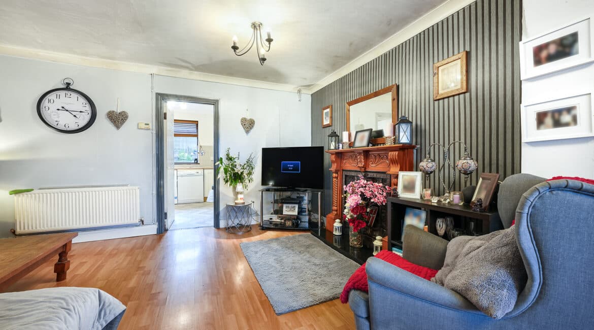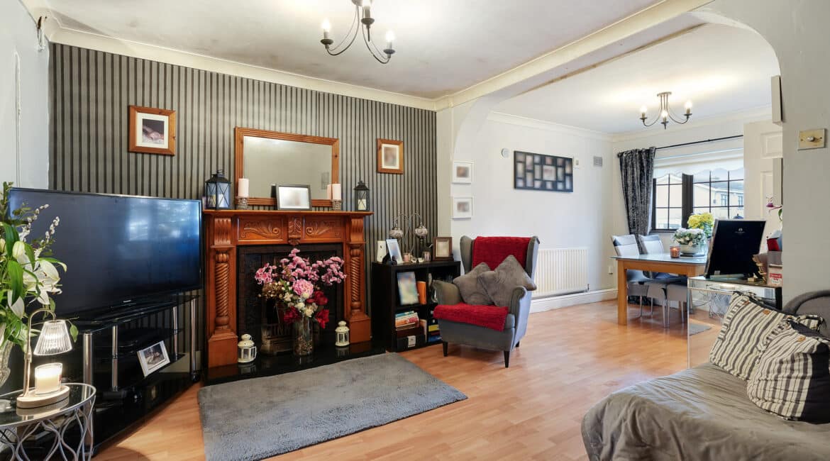 Bright and spacious living accommodation of c. 70 sqm comprises of entrance hallway, open plan living/dining room with feature fireplace, extended kitchen to rear with access to rear garden. Upstairs hosts 2 double bedrooms and a family bathroom. This fantastic property comes to the market in good condition throughout and benefits gas fired central heating, quality flooring, front driveway with gated side entrance and a private rear garden.