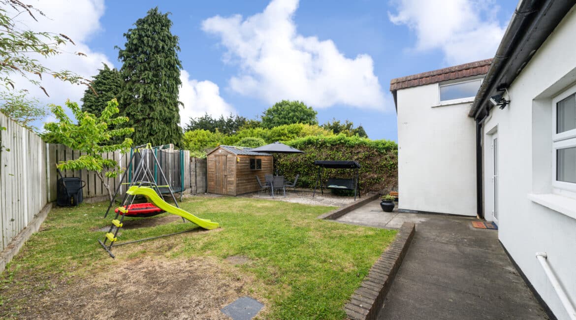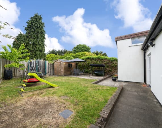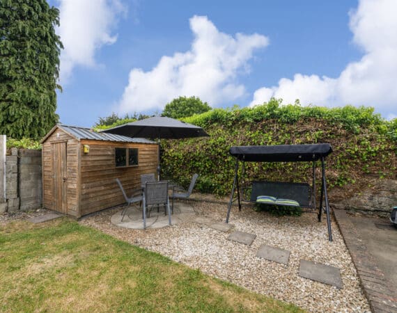 Sunny rear garden with side access