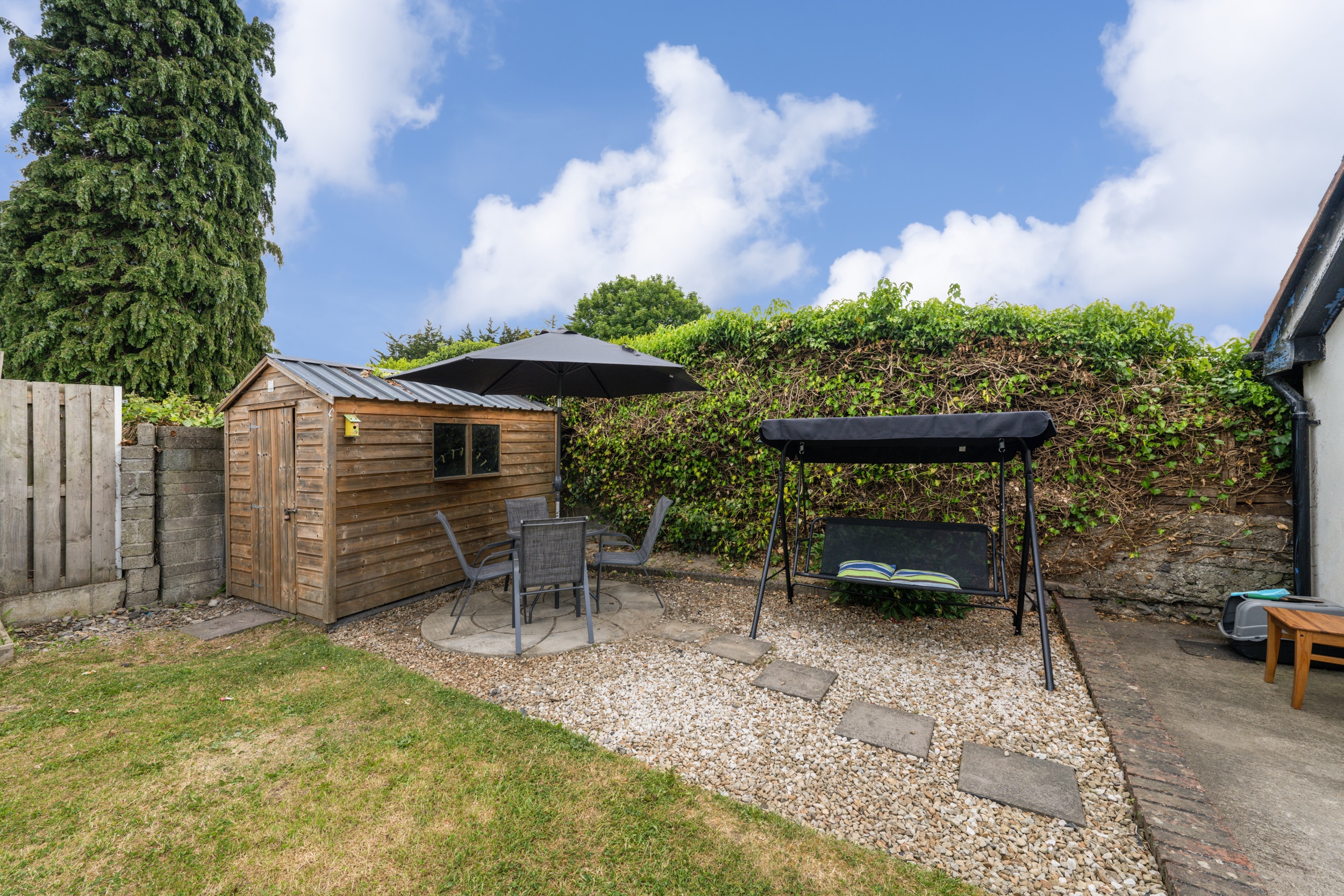 Sunny rear garden with side access