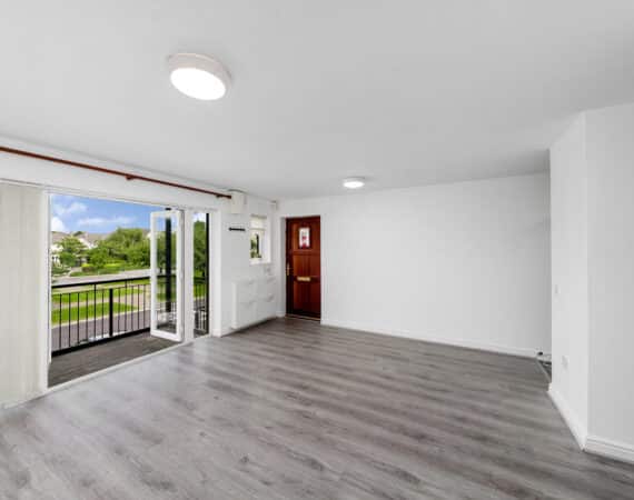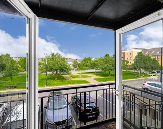 Bright and spacious internal accommodation of c. 70 sq.m comprises of an entrance hallway with, a main family bathroom, two double bedrooms with fitted wardrobes, the master benefitting from an en-suite and balcony doors allowing natural sunlight to flood the room along with the second double bedroom containing a Large Storage space. The open plan kitchen/living and dining area is both practical and stylish, with access to a private balcony overlooking landscaped communal grounds.