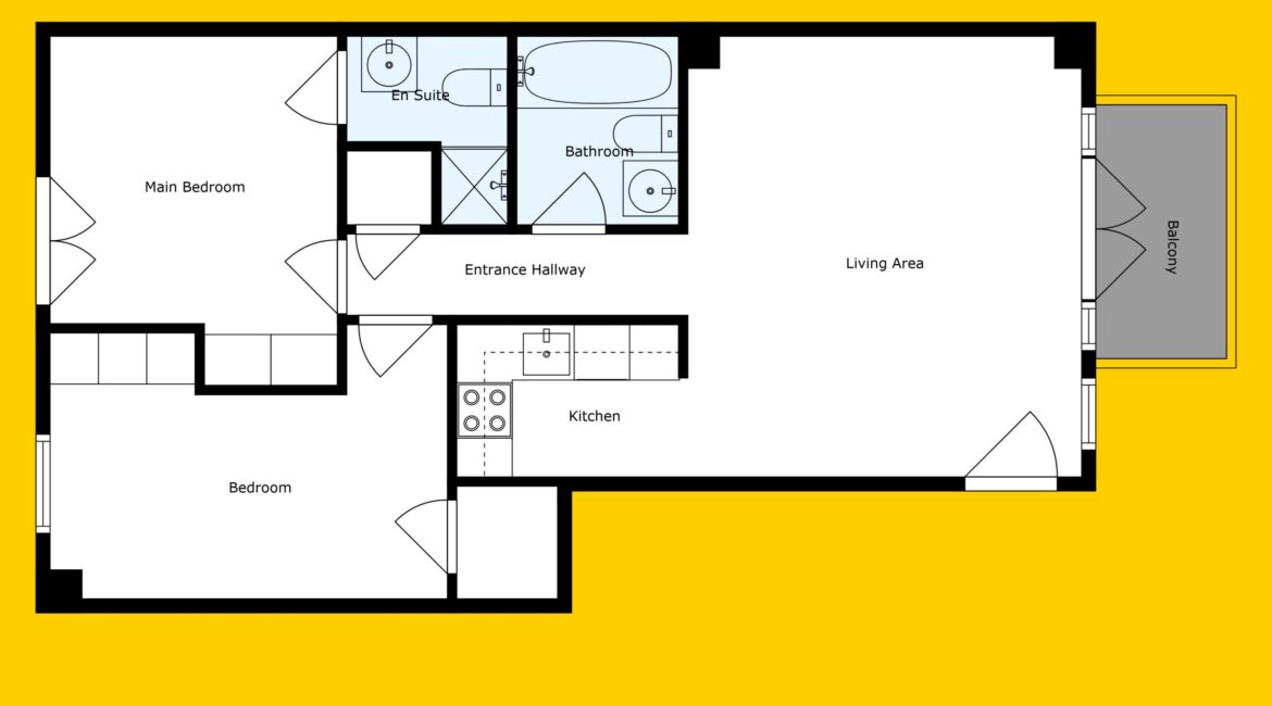 • Spacious open plan living/kitchen/dining area with private balcony