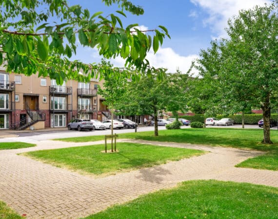 Bright and spacious internal accommodation of c. 70 sq.m comprises of an entrance hallway with, a main family bathroom, two double bedrooms with fitted wardrobes, the master benefitting from an en-suite and balcony doors allowing natural sunlight to flood the room along with the second double bedroom containing a Large Storage space. The open plan kitchen/living and dining area is both practical and stylish, with access to a private balcony overlooking landscaped communal grounds.