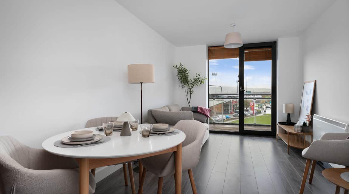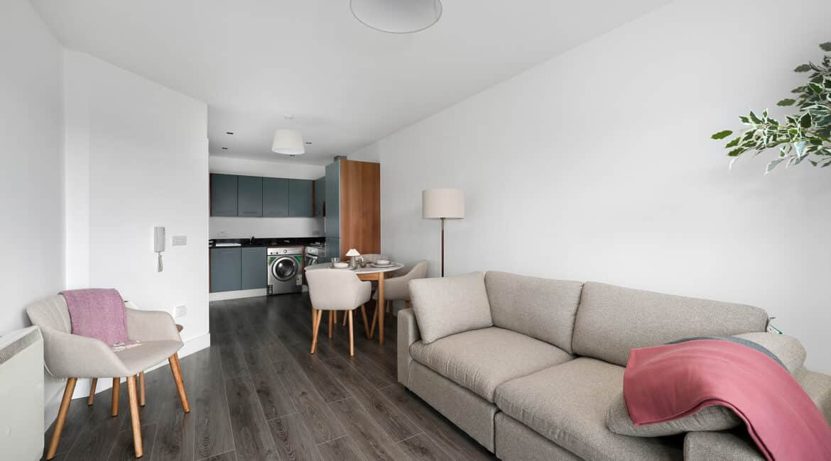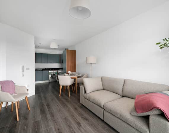 Ray Cooke Auctioneers are thrilled to present this fabulous 1 bed 1 bath 2nd floor apartment to the market in the popular building of Tallow Hall in the heart of Tallaght. Tallow Hall is only seconds from the Square shopping centre, a 3 minute walk to the Tallaght Luas stop and is centred with all amenities surrounding it including shops, cafes, bars and restaurants. This apartment is staged and offers turn key condition to it’s new lucky owners with no onward chain!