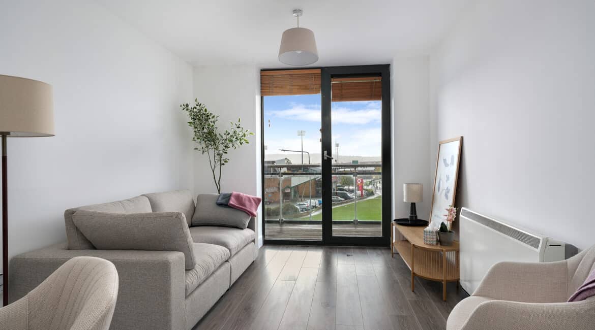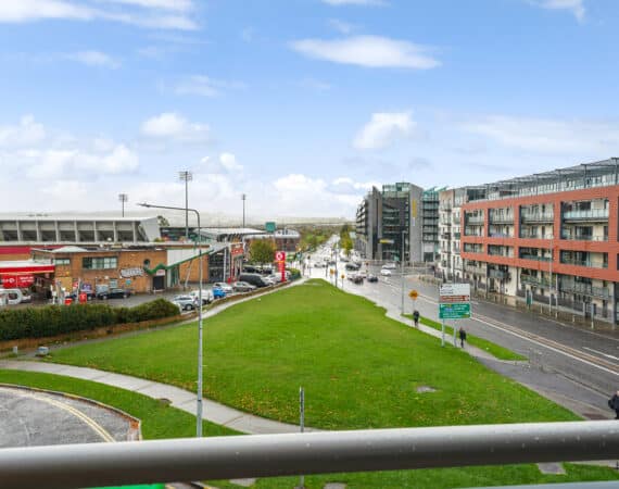 Bright and spacious internal living accommodation of c. 40 sq m comprises of entrance hallway, kitchen/diner & cosy living room. One double bedroom and one main family bathroom. Double doors from both the living room and the bedroom lead out to a SOUTH FACING balcony with mountain views and parts of Tallaght.