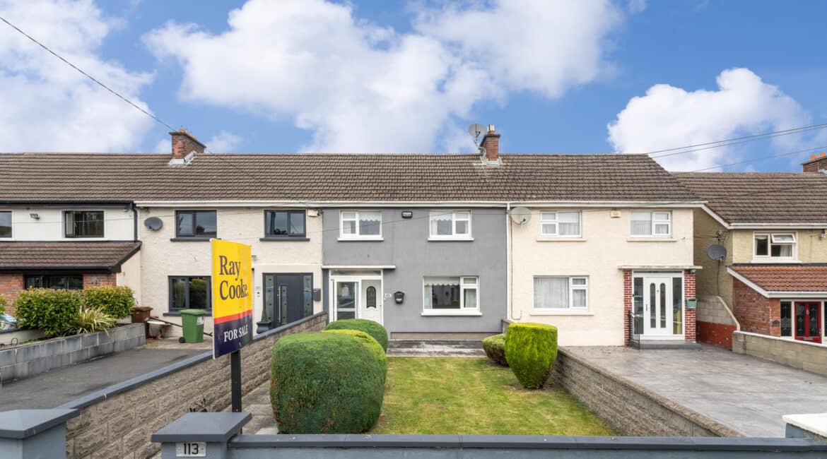 RAY COOKE AUCTIONEERS are proud to present this fantastic three-bedroom mid-terrace family home to the market, ideally located on the ever-popular Palmerstown Avenue, in the heart of Palmerstown, Dublin 20. No. 113 enjoys a prime position with every conceivable amenity within walking distance, including schools, shops, cafés, frequent bus routes, and excellent access to the M50 motorway. The Phoenix Park is just minutes away by car, adding to the appeal of this sought-after location. Spanning 93 sq. m, the bright and spacious accommodation comprises an entrance hall, living room, dining room (fireplaces in both living and dining rooms), kitchen, guest bathroom, main family bathroom, and three generously sized bedrooms. A small porch area off the kitchen leads out to a large rear garden, complete with a block-built shed and access to a rear laneway – ideal for extra convenience, outdoor relaxation, or entertaining. Whether you’re a first-time buyer or a growing family looking to upsize, No. 113 Palmerstown Avenue offers superb potential in a fantastic location. Viewing is highly recommended. Contact Ray Cooke Auctioneers today on 01 554 1699 or 086 828 9950 to arrange yours!