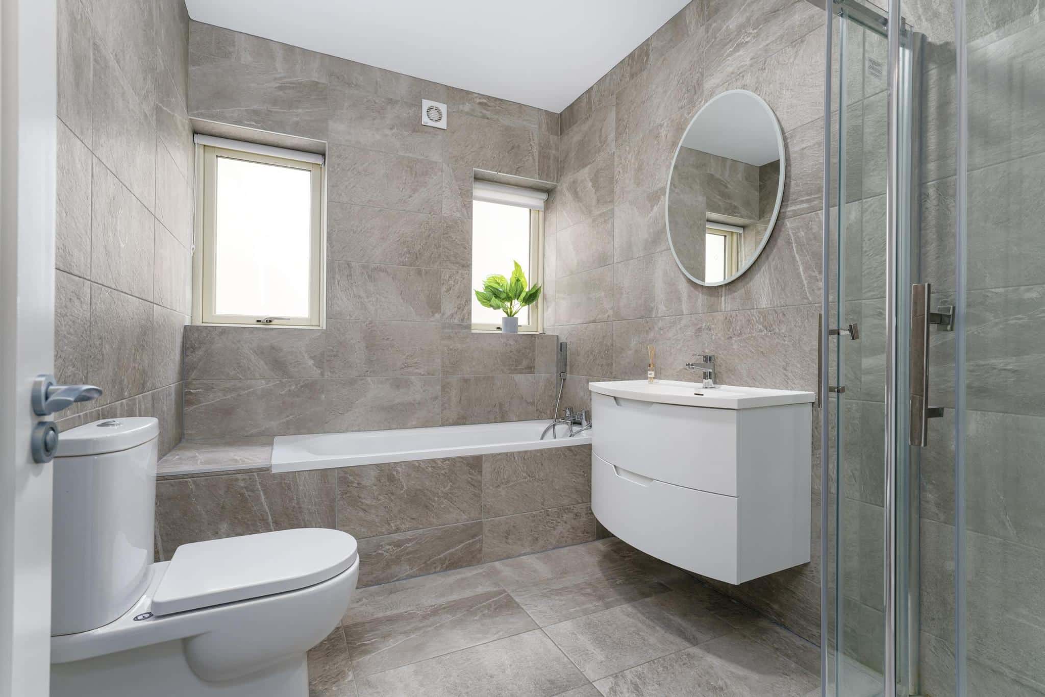 – Fully tiled bathroom suites