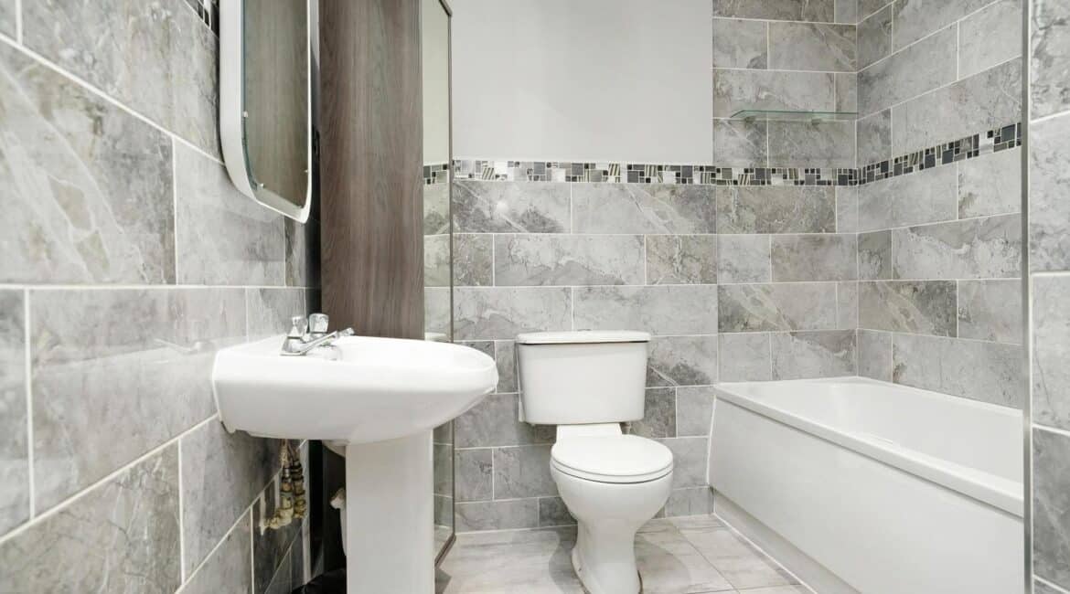 • Fully tiled contemporary bathroom