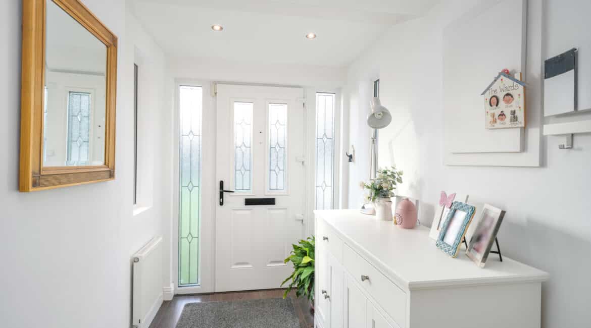 Double doors from the extended rear lead onto low maintenance garden space with block built shed access. The front offers ample off street parking and is not directly overlooked.