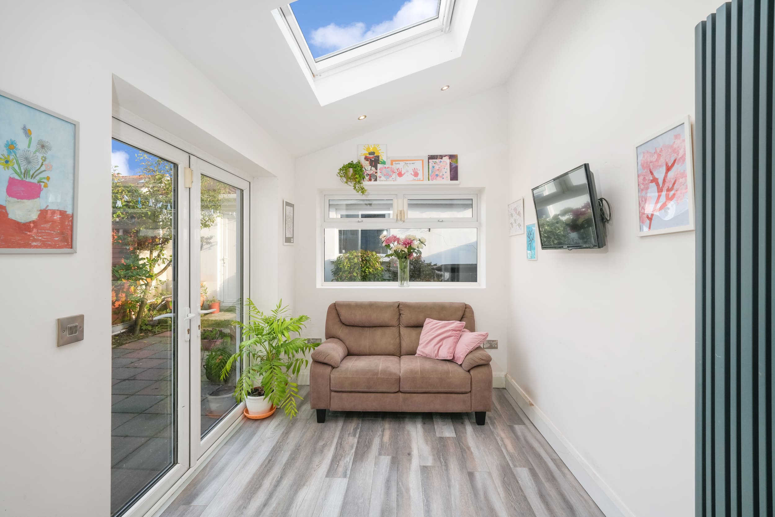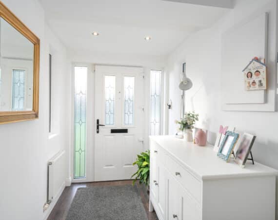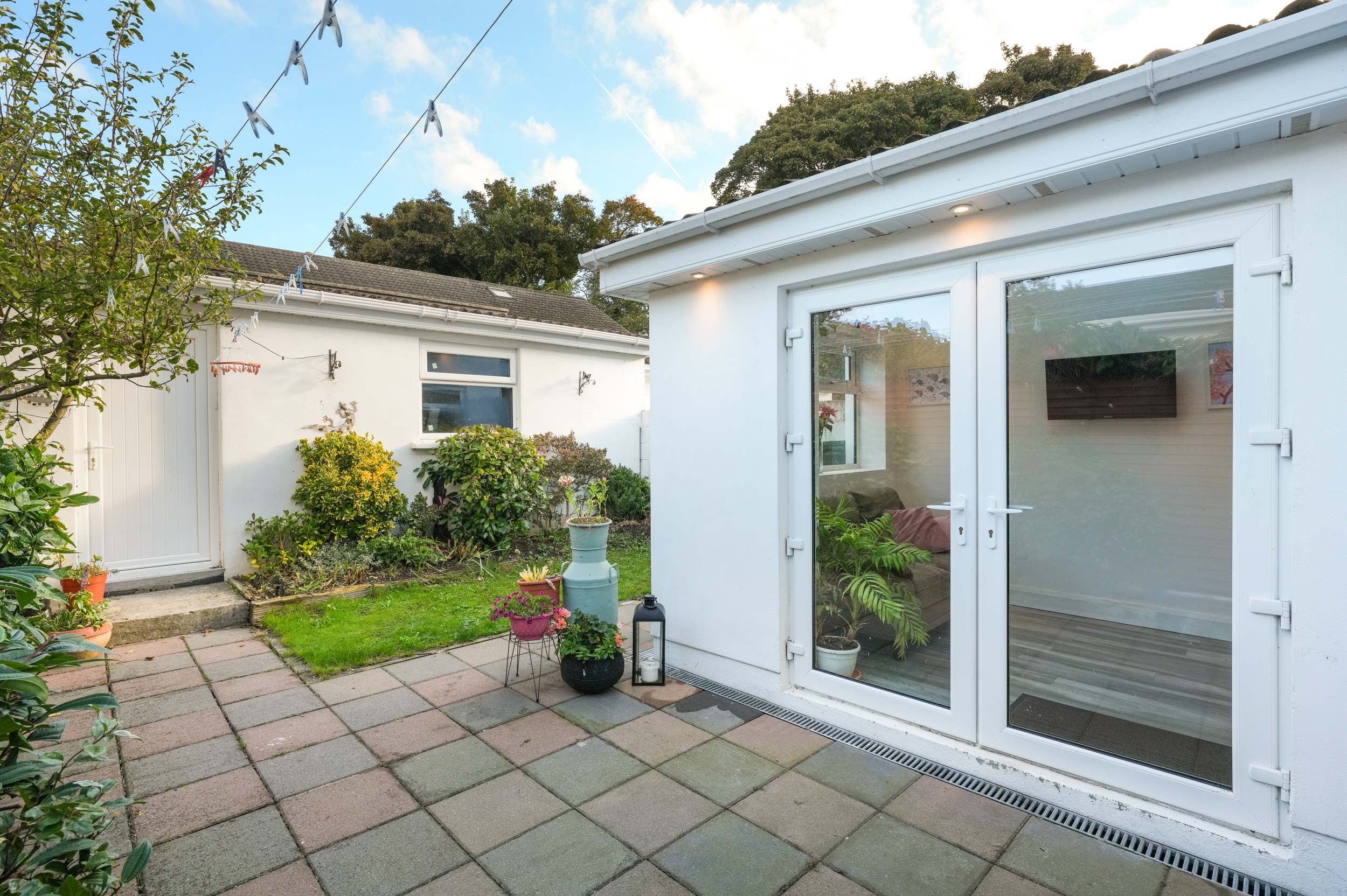 Double doors from the extended rear lead onto low maintenance garden space with block built shed access. The front offers ample off street parking and is not directly overlooked.