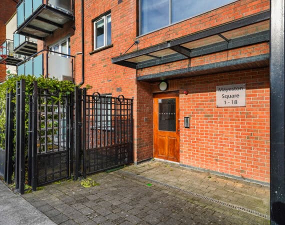 Travelling on the St Margaret’s Road coming from Charlestown Shopping Centre proceed through the traffic lights and straight through the roundabout. Proceed straight at the crossroads and you will find Mayeston on your left-hand side. No. 13 block door 1 – 18 is accessed from St. Margarets Road.