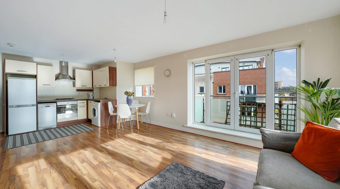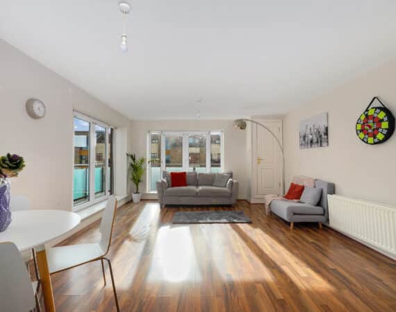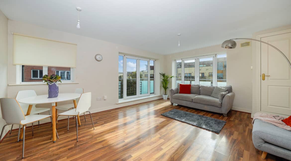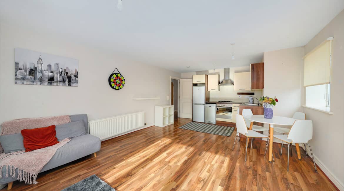 RAY COOKE AUCTIONEERS are delighted to present this stunning two-bedroom, 3rd floor apartment to the market nestled in the Mayeston development in Finglas, Dublin 11 with a host of services and amenities are all within arm’s reach. No 13 is ideally positioned on the third floor of Mayeston Square. Conveniently located close to Finglas Village, Glasnevin and Charlestown Shopping Centre, this apartment has a wide array of shops, bars & restaurants. The Botanical Gardens, IKEA and DCU are close by, to mention just a few local amenities. There are excellent road networks including the M50 & N2 motorways and to bring you in & around Dublin City, the 140 and 40A bus stops are merely around the corner. The 17A to Blanchardstown is also nearby. Bright and spacious living accommodation of c. 71 sq.m comprises of entrance hallway, open plan kitchen/living with dining area, two generous double bedrooms (master with ensuite), storage closet and a fully tiled family bathroom. This property comes to the market in turn key condition throughout and boasts gas fired central heating, double glazed windows, quality flooring throughout, large wrap around balcony with a south facing orientation and a secure underground carpark. The property benefits from a south facing orientation which floods each room with natural light. No 13 will appeal to first time buyers and investors – An opportunity not to be missed; Contact the agent at our Northside office on 01-6995050 or 086-0469458 for further information or to arrange viewing!!