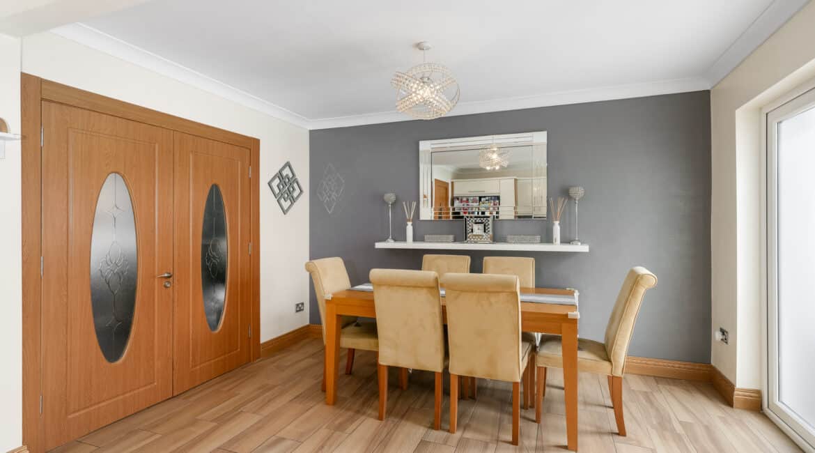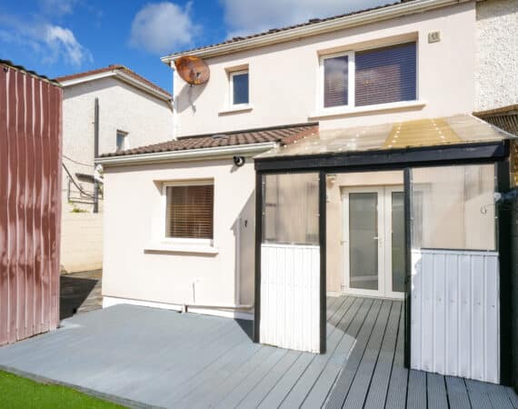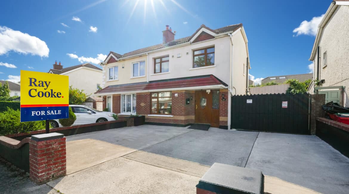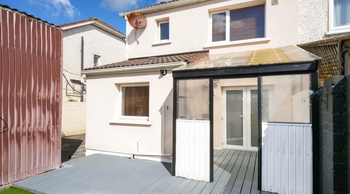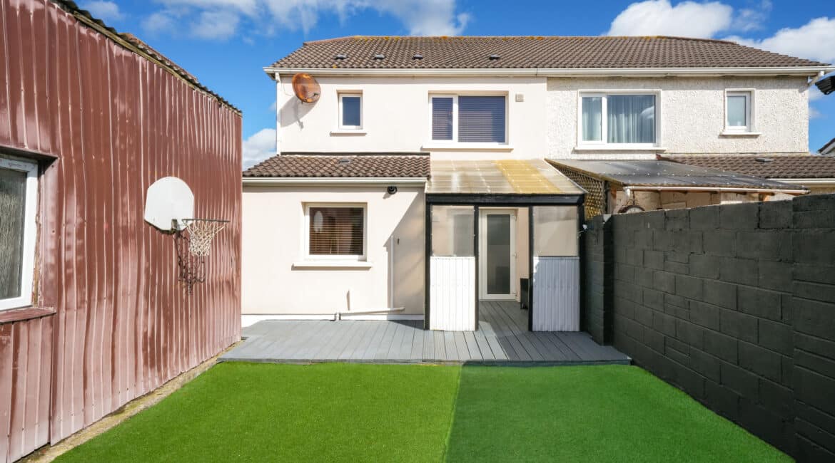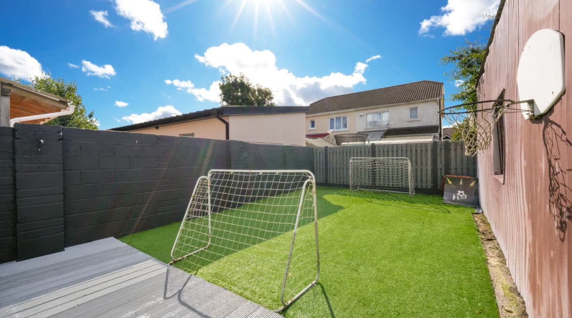 RAY COOKE AUCTIONEERS proudly present this fantastic three – bedroom semi-detached property with extra large side entrance to the market in the exclusive and ever sought after Earlsfort development, Lucan. This superb location offers unrivalled convenience, with the M50 Motorway, Liffey Valley Shopping Centre, and a host of local amenities all within easy reach, including shops, cafes, sports and leisure facilities, and a choice of excellent primary and secondary schools.Bright, airy and spacious interior living accommodation of c. 90 sq. m comprises of entrance hallway, living room, dining room, fully fitted top quality kitchen, downstairs WC, three spacious bedrooms and main family bathroom. Double doors from the rear open onto a low maintenance south west facing rear garden. The garden is further enhanced by an extra large shed with roller shutter door which would be perfect for conversion or anyone that is self employed. The front boasts off street parking for multiple cars.No. 14 is a deceptively spacious property and boasts an endless list of striking features including; XL side entrance, top quality flooring and a jawdropping main family bathroom. To be seen is to be appreciated! Call Ray Cooke Auctioneers for further information or to arrange viewing!