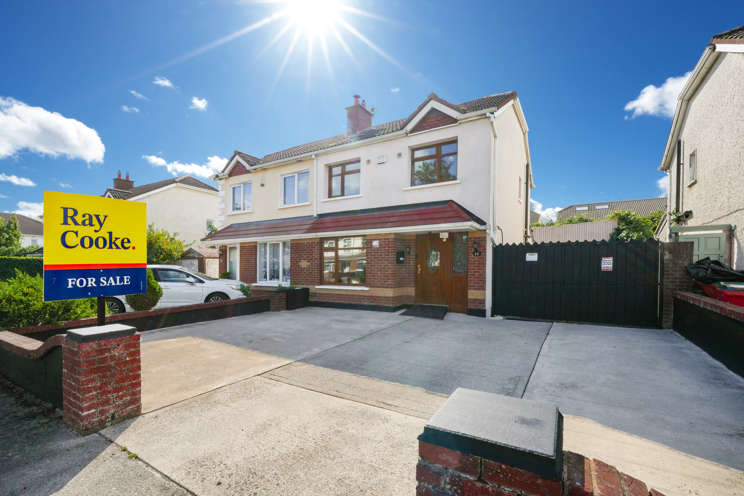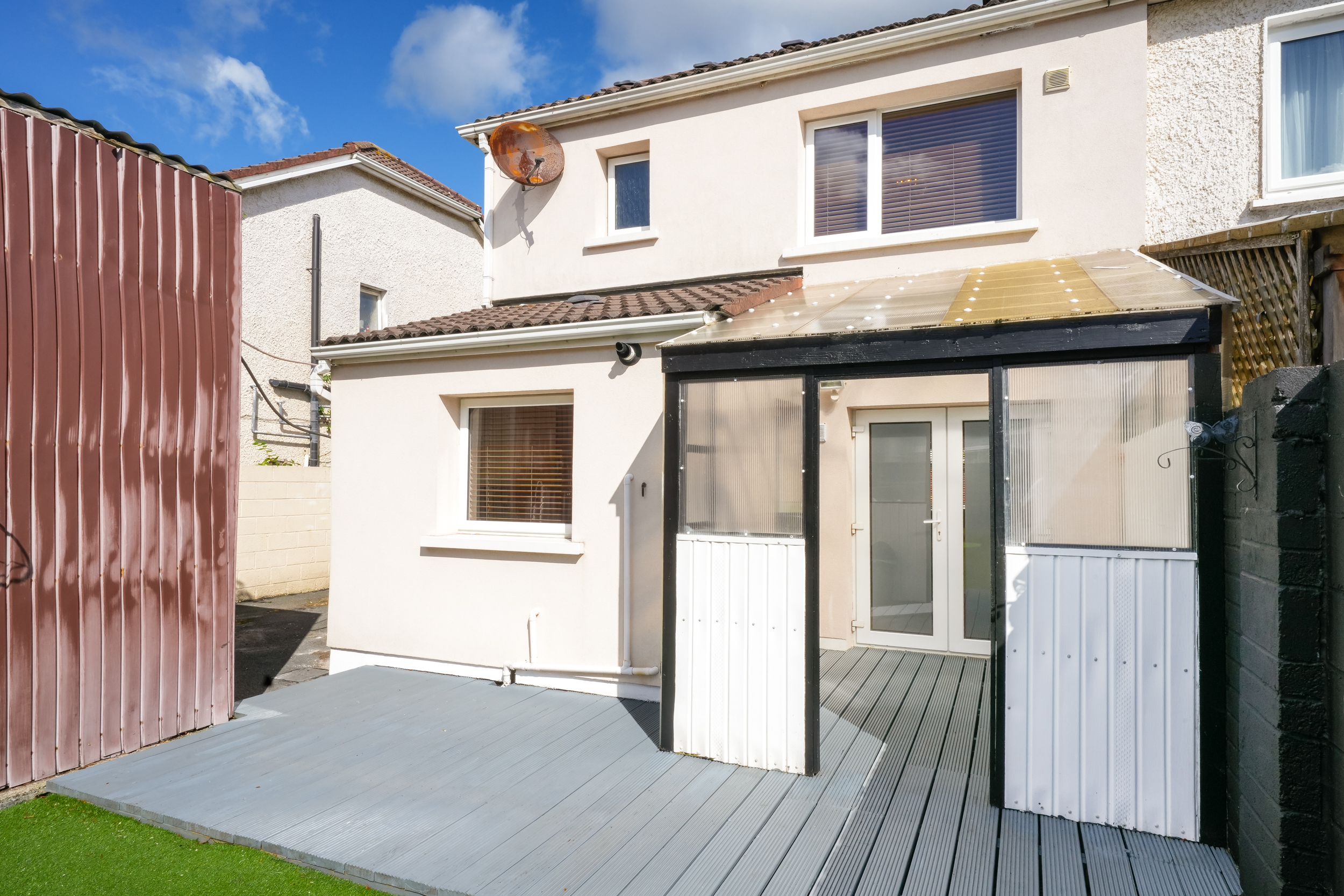 RAY COOKE AUCTIONEERS proudly present this fantastic three – bedroom semi-detached property with extra large side entrance to the market in the exclusive and ever sought after Earlsfort development, Lucan. This superb location offers unrivalled convenience, with the M50 Motorway, Liffey Valley Shopping Centre, and a host of local amenities all within easy reach, including shops, cafes, sports and leisure facilities, and a choice of excellent primary and secondary schools.Bright, airy and spacious interior living accommodation of c. 90 sq. m comprises of entrance hallway, living room, dining room, fully fitted top quality kitchen, downstairs WC, three spacious bedrooms and main family bathroom. Double doors from the rear open onto a low maintenance south west facing rear garden. The garden is further enhanced by an extra large shed with roller shutter door which would be perfect for conversion or anyone that is self employed. The front boasts off street parking for multiple cars.No. 14 is a deceptively spacious property and boasts an endless list of striking features including; XL side entrance, top quality flooring and a jawdropping main family bathroom. To be seen is to be appreciated! Call Ray Cooke Auctioneers for further information or to arrange viewing!