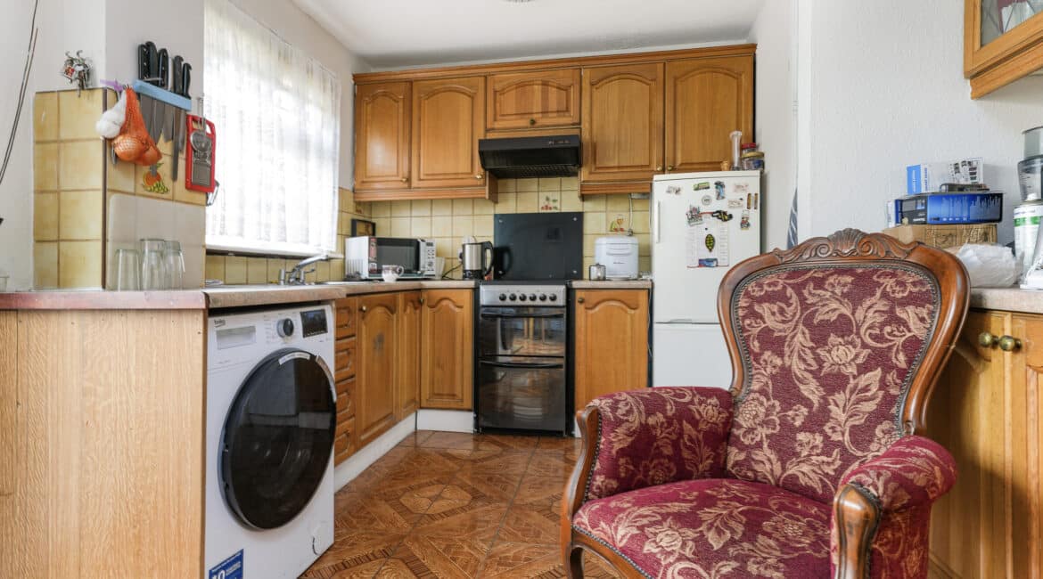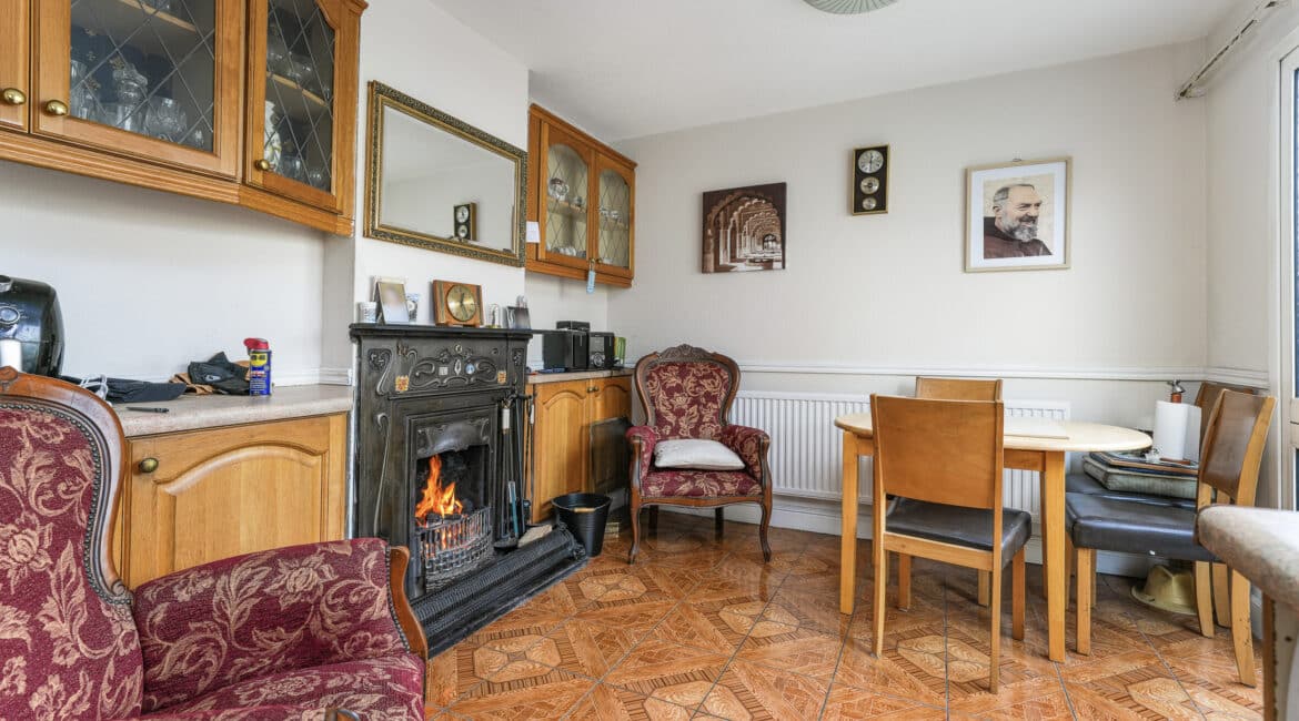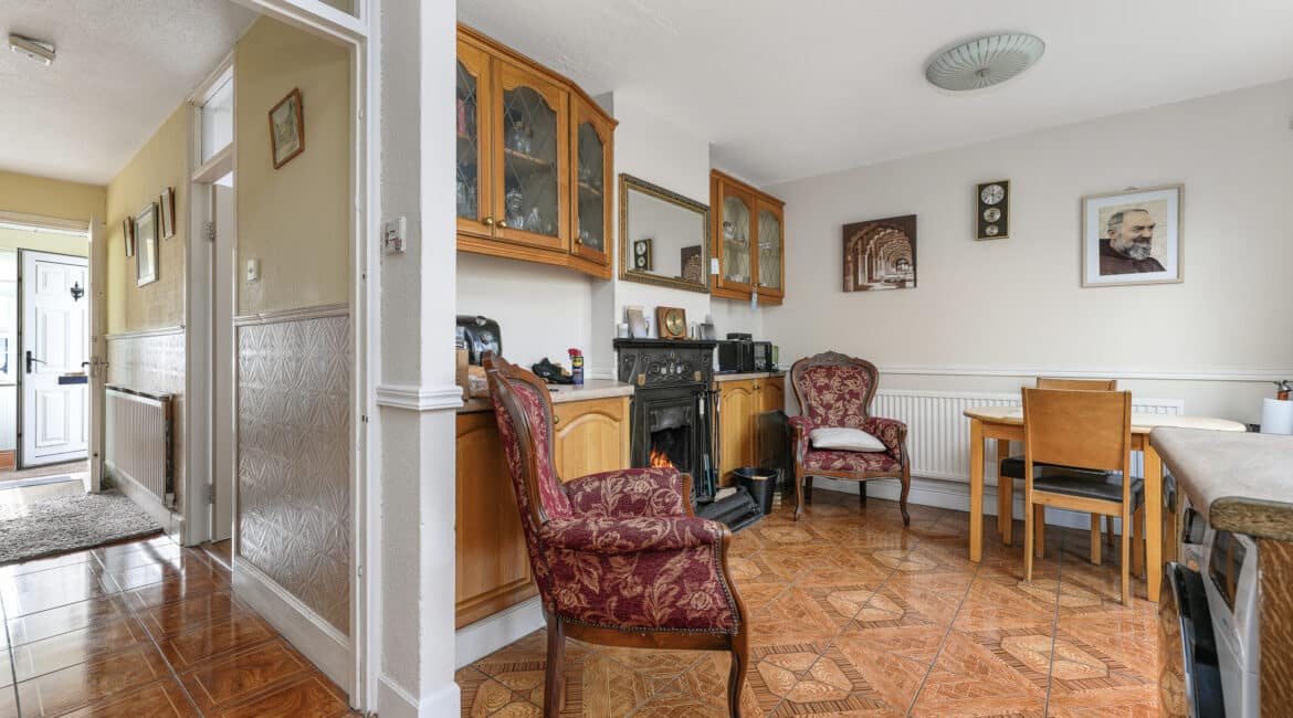 Additional features include oil-fired central heating, double-glazed windows throughout, and a solid layout with excellent scope for modernisation. Built in 1975, the property extends to approximately c. 75 sq.m and carries a BER rating of F.