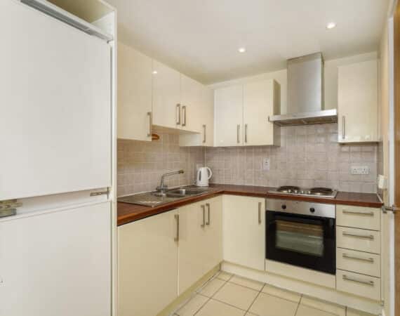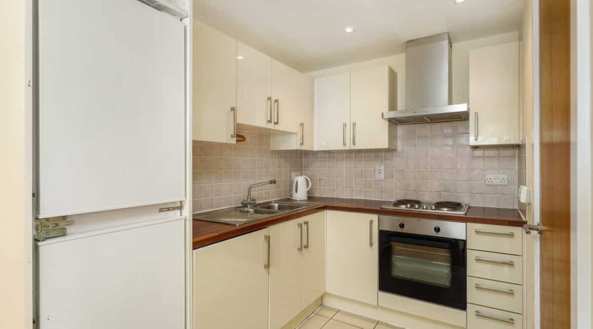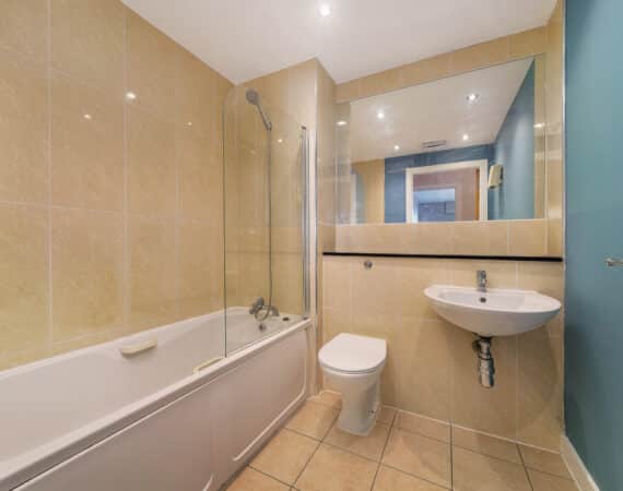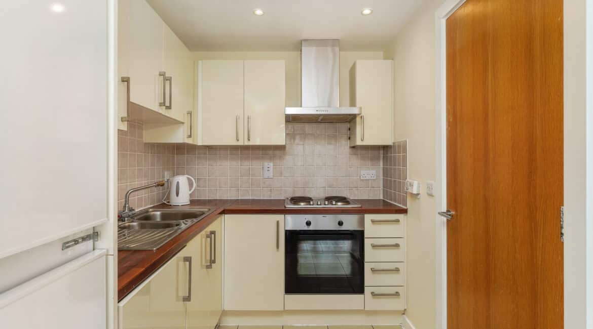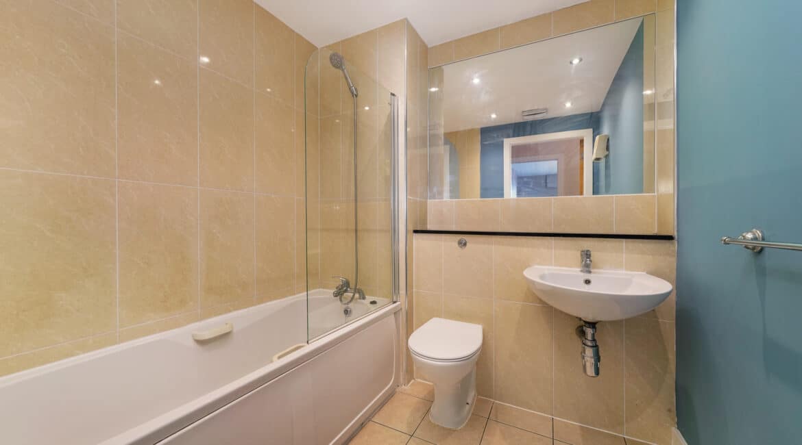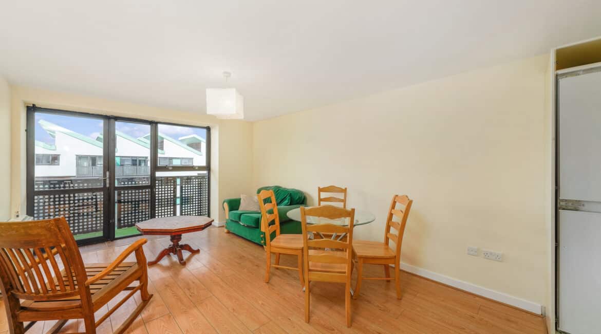 This stylish one-bedroom, one-bathroom top-floor apartment boasts a bright, well-proportioned layout. A welcoming entrance hallway leads to a generous living area that opens onto a private balcony—perfect for unwinding or hosting friends. The open-plan design seamlessly combines the kitchen, dining, and living spaces, creating a warm and inviting atmosphere. The generously sized double bedroom includes built-in wardrobe space, offering ample storage. The bathroom is fitted with a bath and overhead shower, along with a toilet and hand basin.
