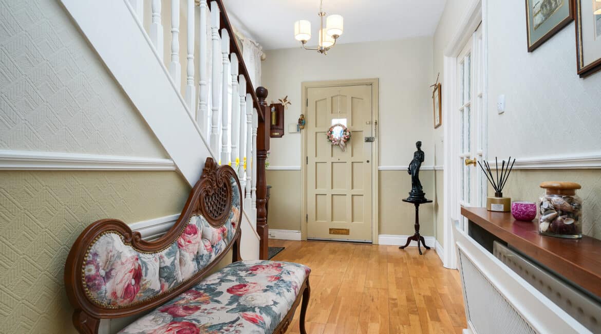 Constructed in the late 1970s, No. 16 The Gables is introduced to the market offering a rare opportunity for a purchaser to acquire a truly exceptional family home in this sought-after setting. Extending to a generous c.138 sq. m, the internal living accommodation comprises at ground floor level of a welcoming entrance hallway, a bright and spacious open-plan lounge/dining area, kitchen, sunroom, and understairs guest W/C. Upstairs hosts four generously proportioned bedrooms, including a master with ensuite, along with a main family bathroom. No. 16 is further enhanced by a generous south-easterly facing wrap-around rear garden, a spacious driveway, and a well-maintained front garden.