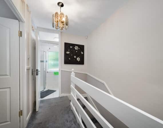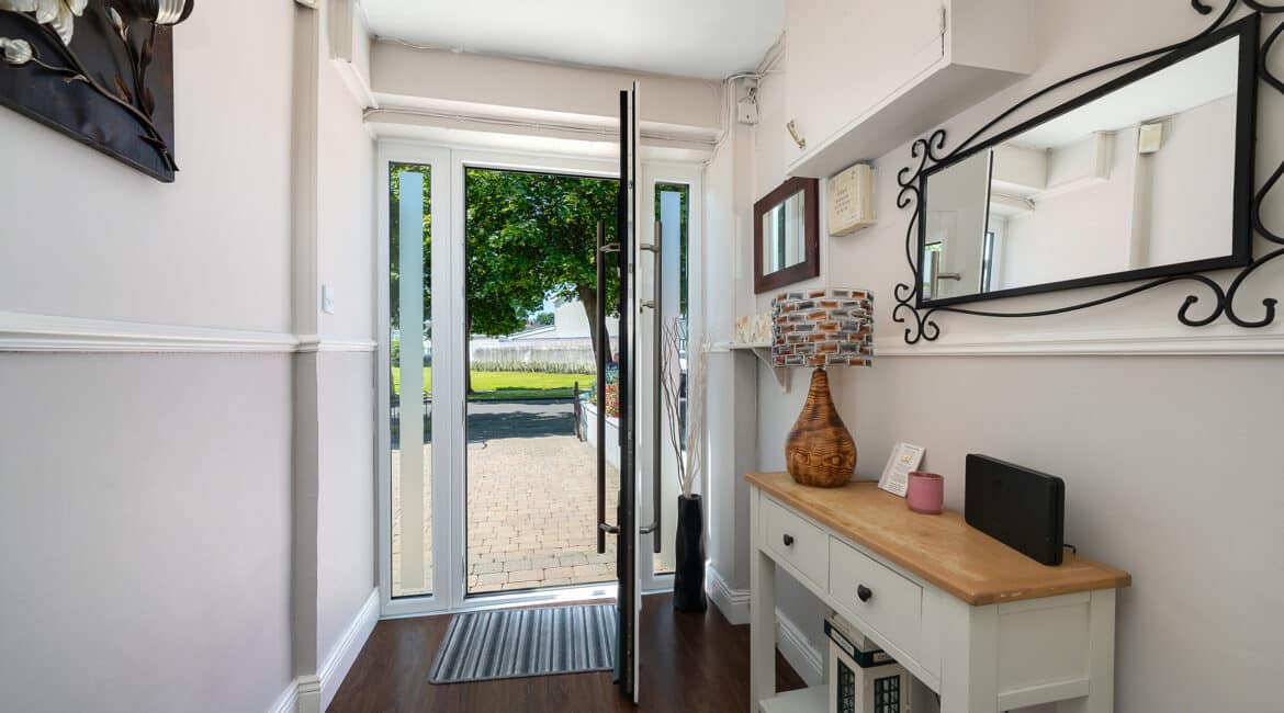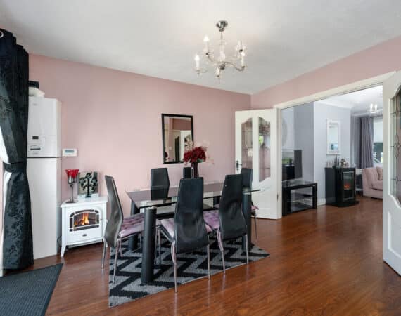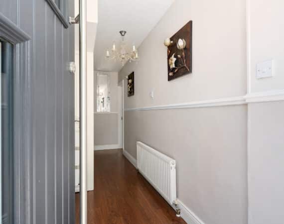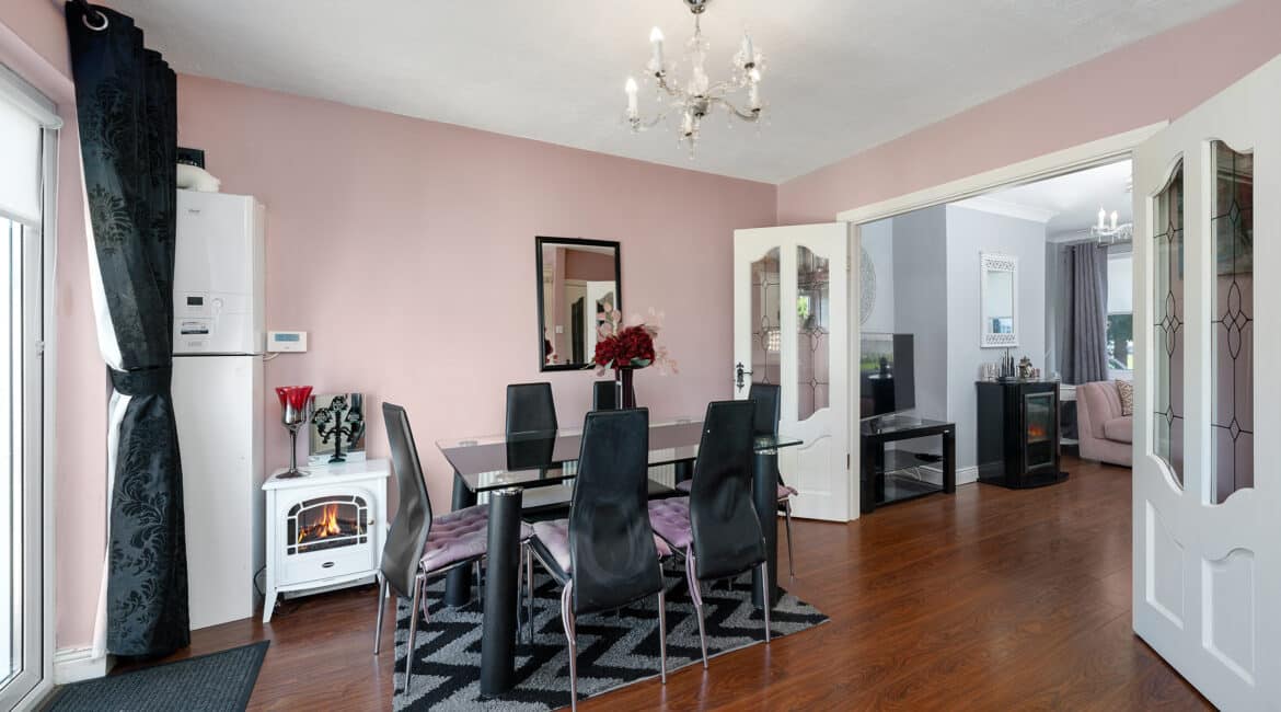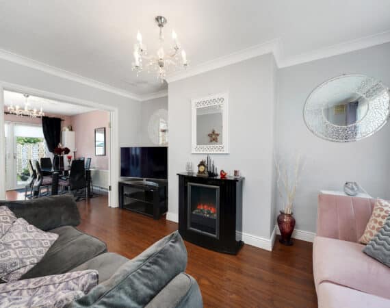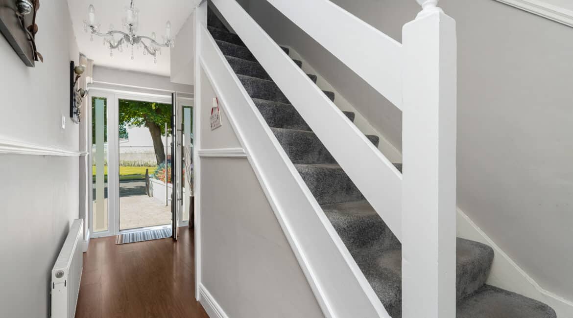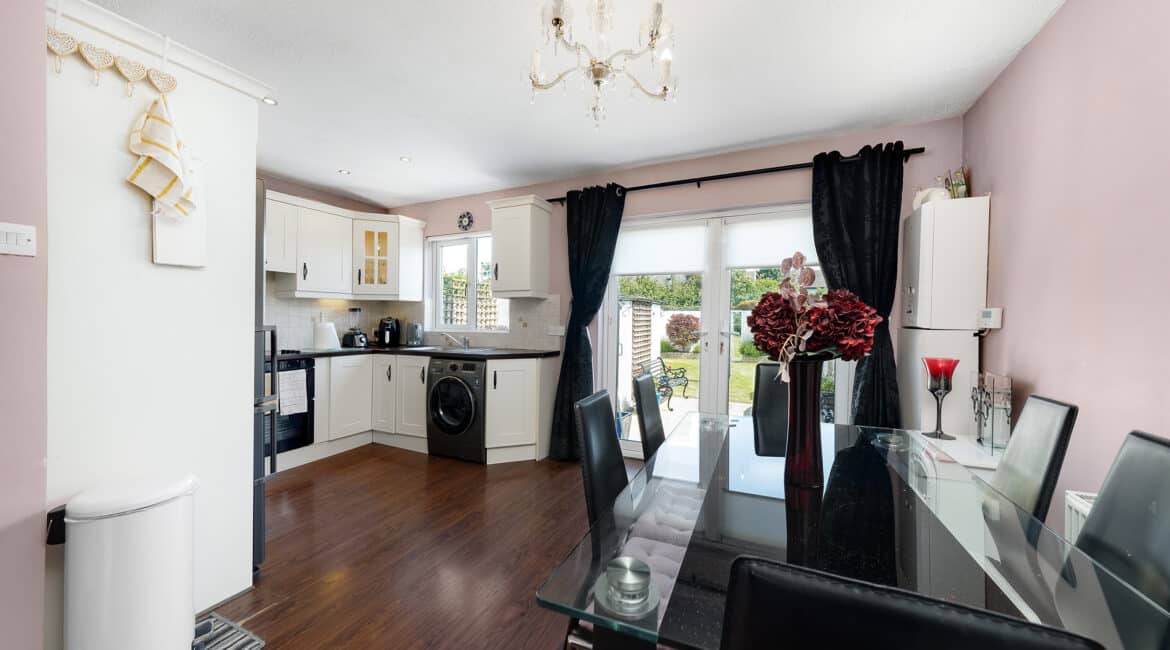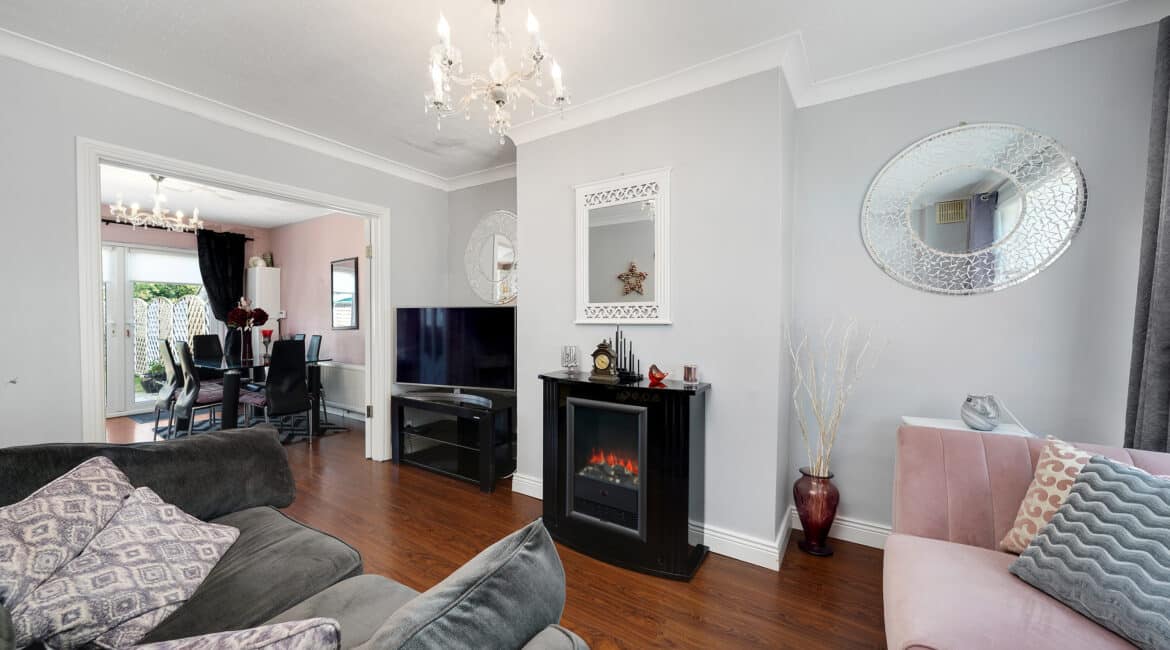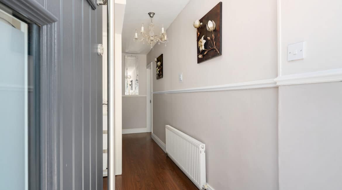 161 The Crescent offers a bright and modern interior, ideal for family living. The ground floor includes a spacious front living room and an open-plan kitchen/dining area with access to the rear garden. Upstairs, there are three double bedrooms —along with a fully tiled family bathroom. Fully renovated property featuring gas-fired central heating, double-glazed windows, and a brand-new gas cylinder and boiler. The home also boasts a generous rear garden with a spacious garage, also offering excellent potential for future extension.