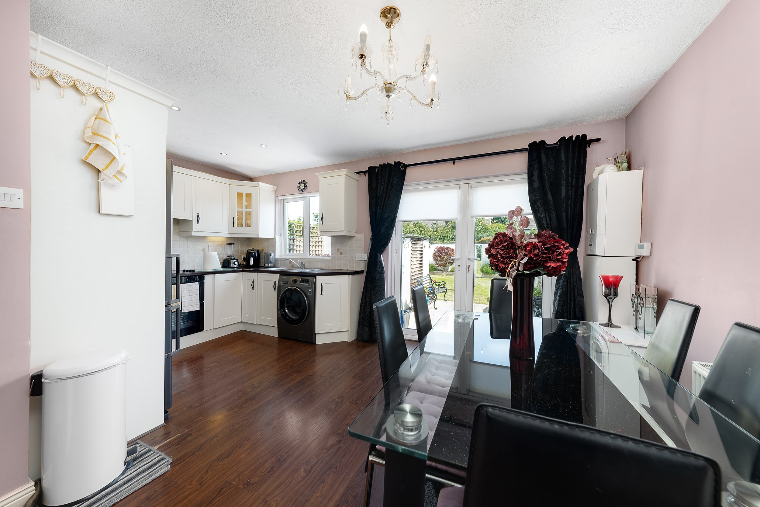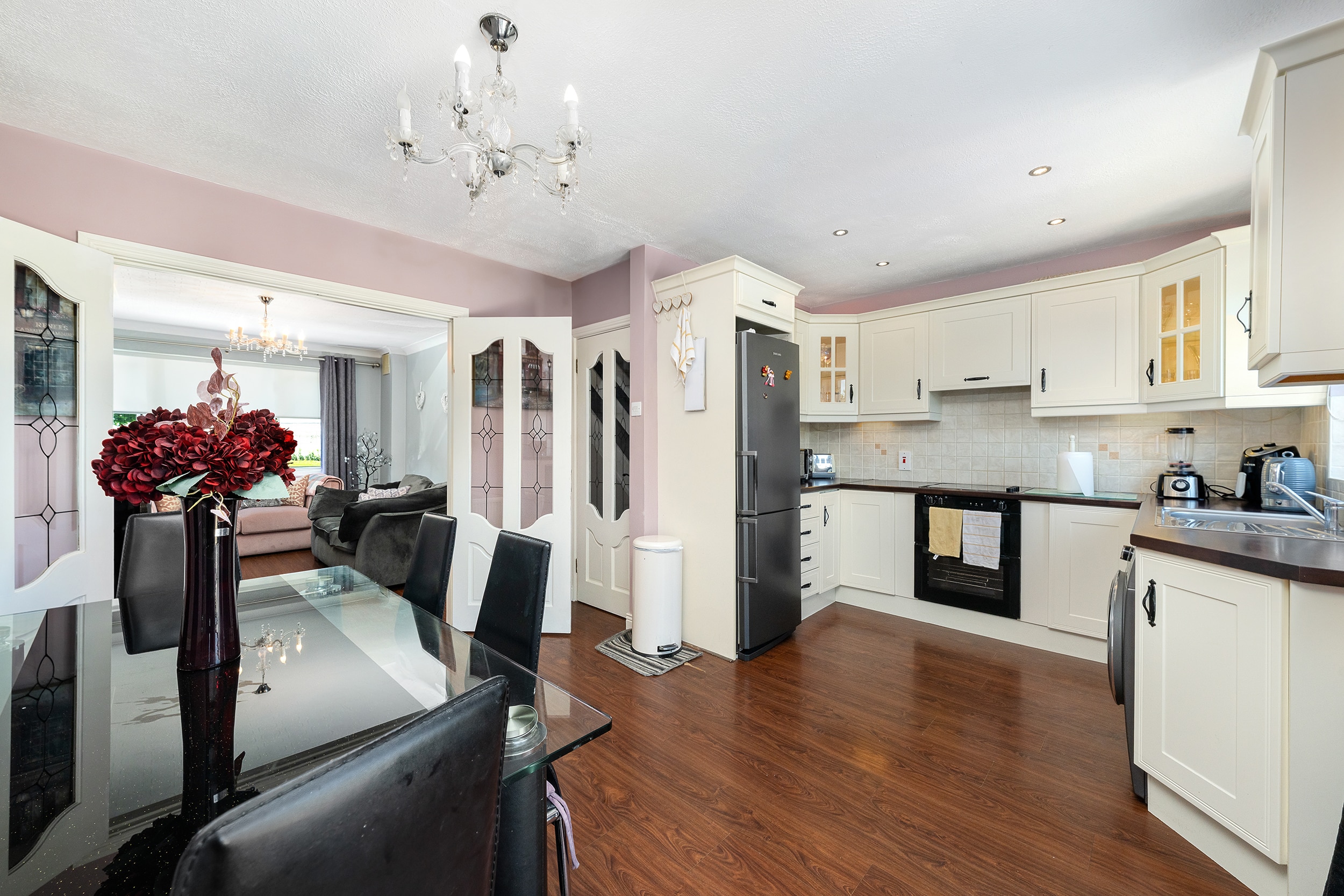 161 The Crescent offers a bright and modern interior, ideal for family living. The ground floor includes a spacious front living room and an open-plan kitchen/dining area with access to the rear garden. Upstairs, there are three double bedrooms —along with a fully tiled family bathroom. Fully renovated property featuring gas-fired central heating, double-glazed windows, and a brand-new gas cylinder and boiler. The home also boasts a generous rear garden with a spacious garage, also offering excellent potential for future extension.