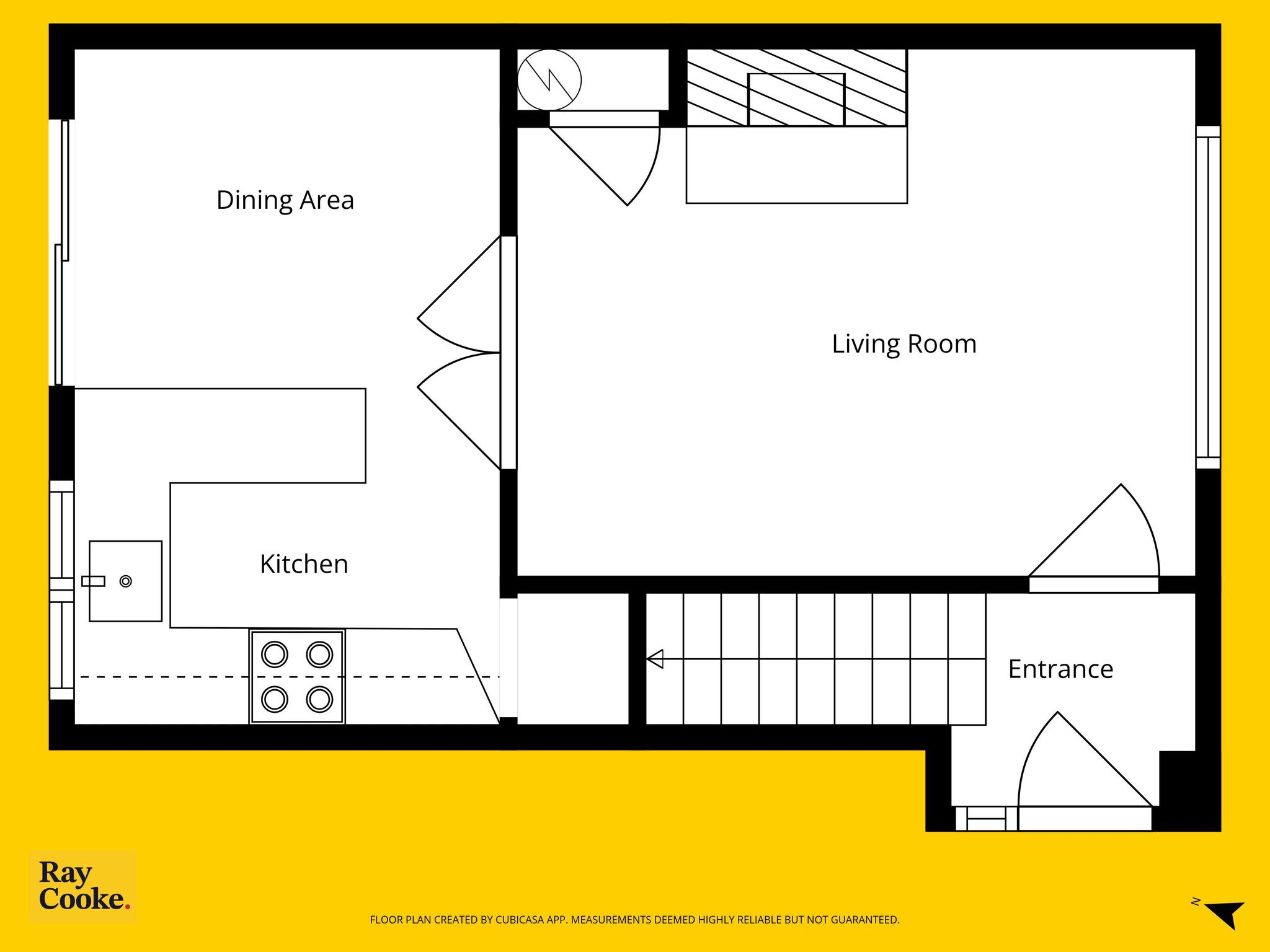 Accommodation extends to approximately 60 sq.m and is well laid out throughout. The ground floor comprises a porch entrance, leading into a bright and welcoming living room, with double doors opening through to a kitchen/dining area overlooking the rear garden. Upstairs hosts two generously sized double bedrooms, both featuring built-in wardrobes, along with a family bathroom.