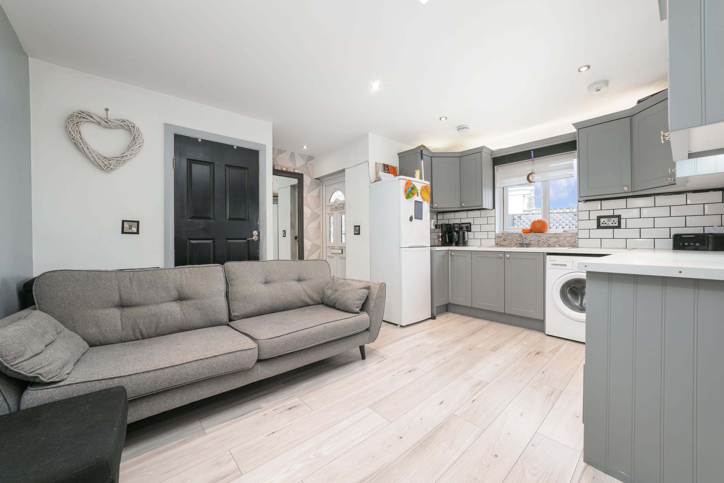 This modern two-bedroom granny flat extension features an open-plan kitchen, dining, and living area, a contemporary family bathroom, and quality finishes throughout—ideal for generating extra rental income or accommodating family guests.