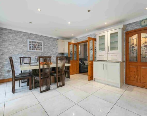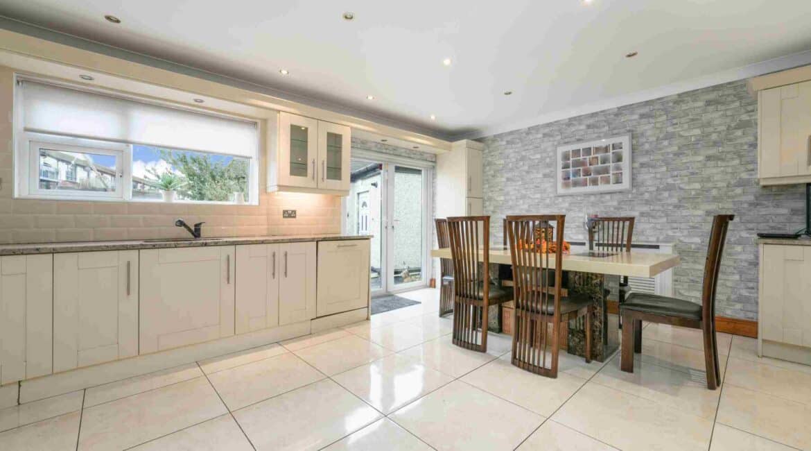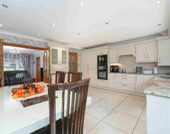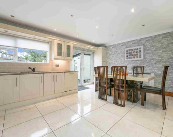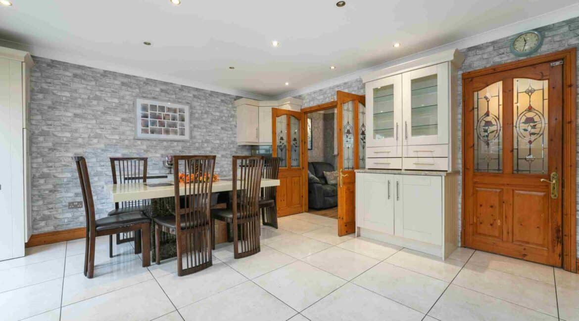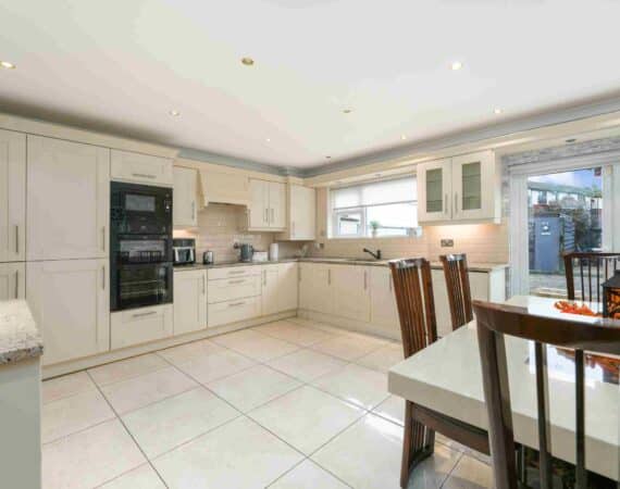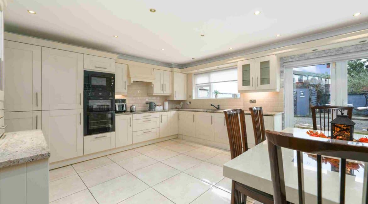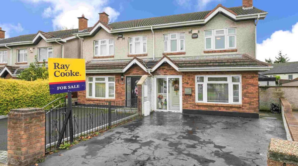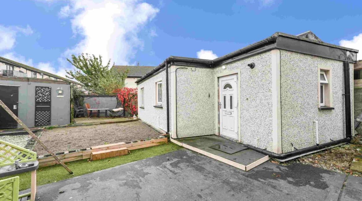 RAY COOKE AUCTIONEERS are proud to present 17 Oldcourt Manor, Firhouse, Dublin 24 — a stunning three-bedroom, three-bathroom semi-detached family home boasting approximately 100 sq.m of beautifully designed living space, complemented by a self-contained two-bedroom, one-bathroom granny flat to the rear. Upon entry, you are greeted by a welcoming hallway featuring an under-stairs vanity closet. The front living room flows through double doors into a beautifully presented, modern, fully fitted kitchen and dining area.