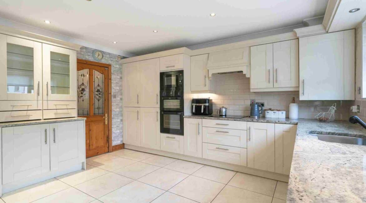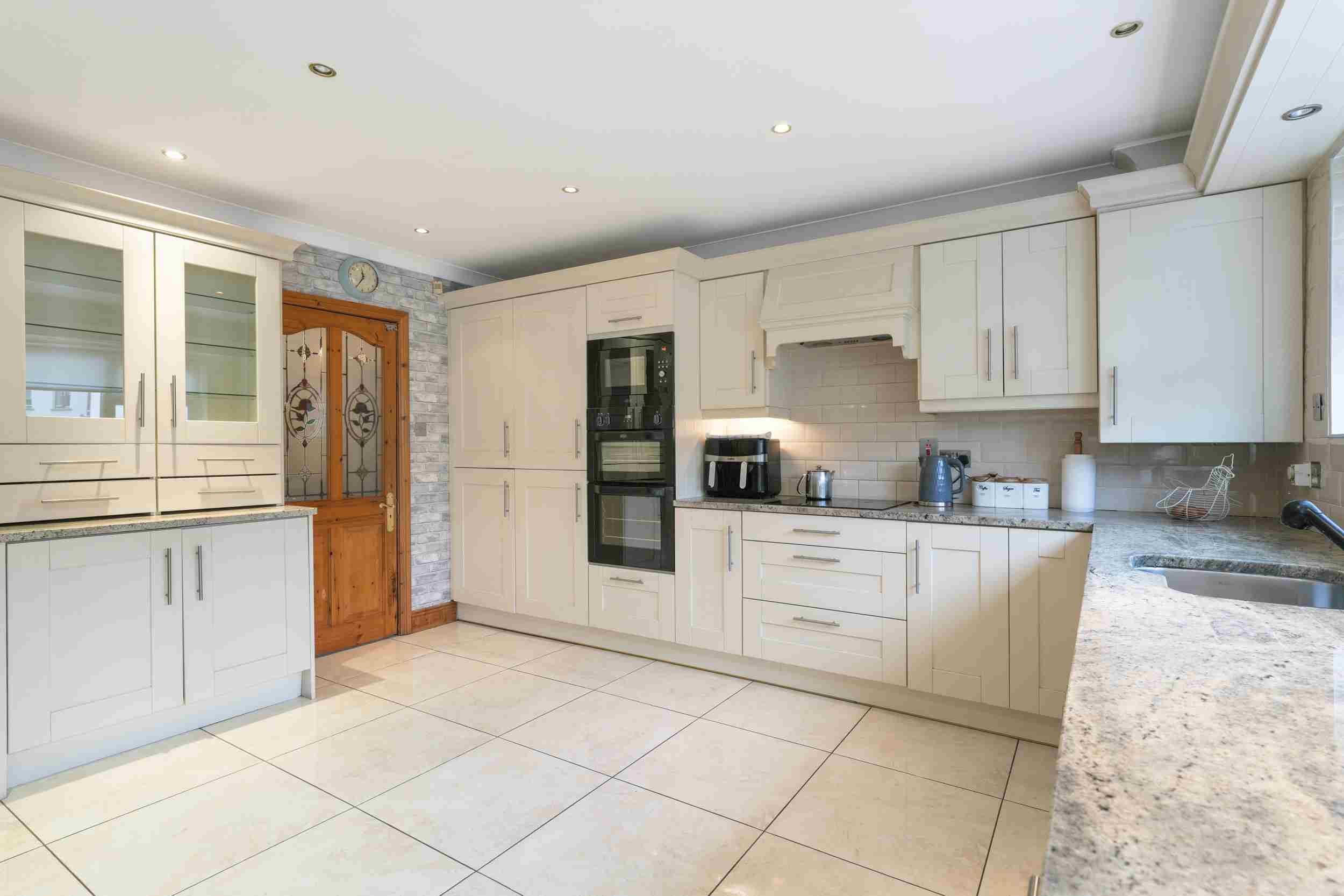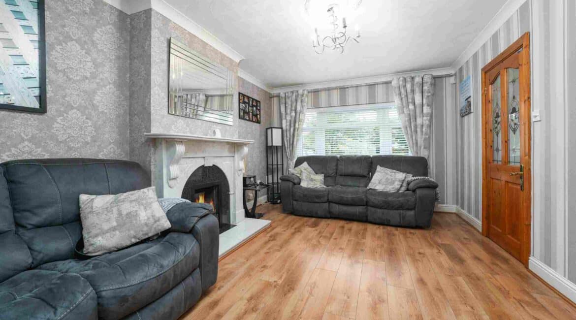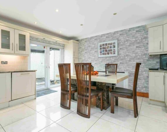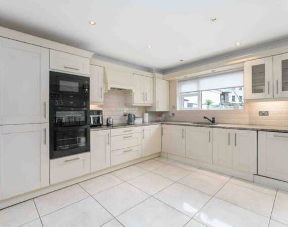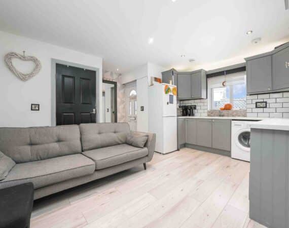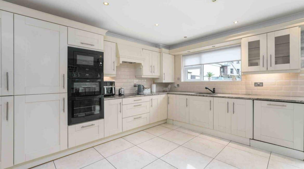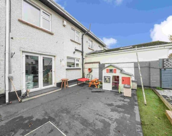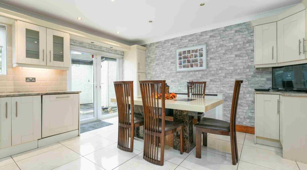 RAY COOKE AUCTIONEERS are proud to present 17 Oldcourt Manor, Firhouse, Dublin 24 — a stunning three-bedroom, three-bathroom semi-detached family home boasting approximately 100 sq.m of beautifully designed living space, complemented by a self-contained two-bedroom, one-bathroom granny flat to the rear. Upon entry, you are greeted by a welcoming hallway featuring an under-stairs vanity closet. The front living room flows through double doors into a beautifully presented, modern, fully fitted kitchen and dining area.