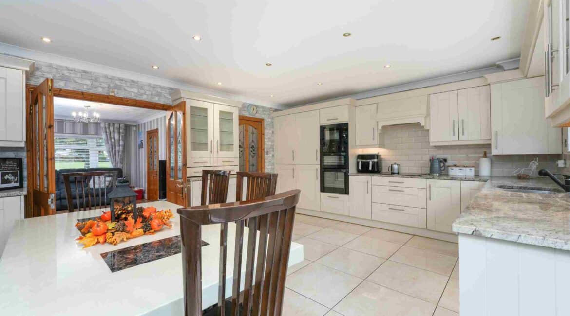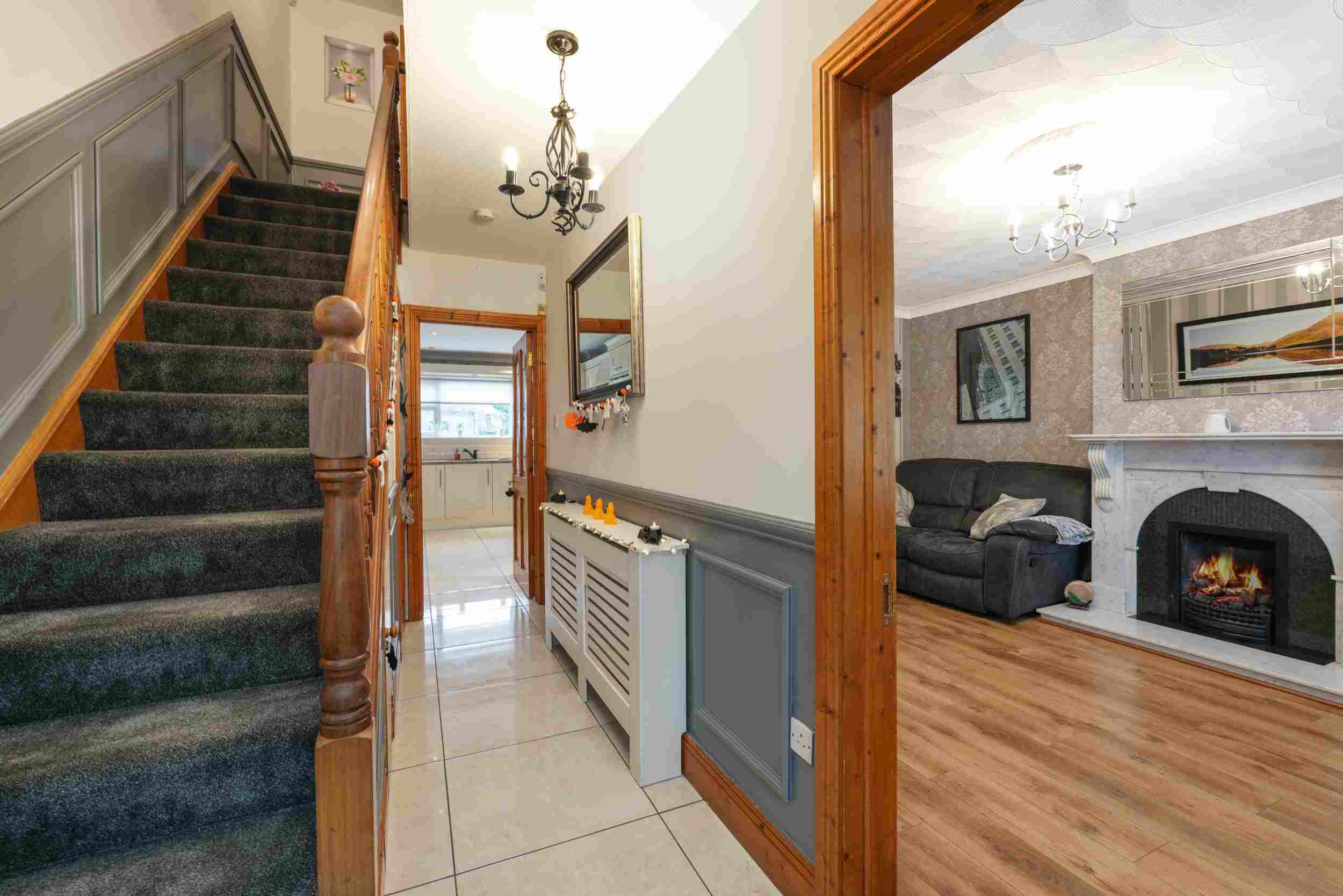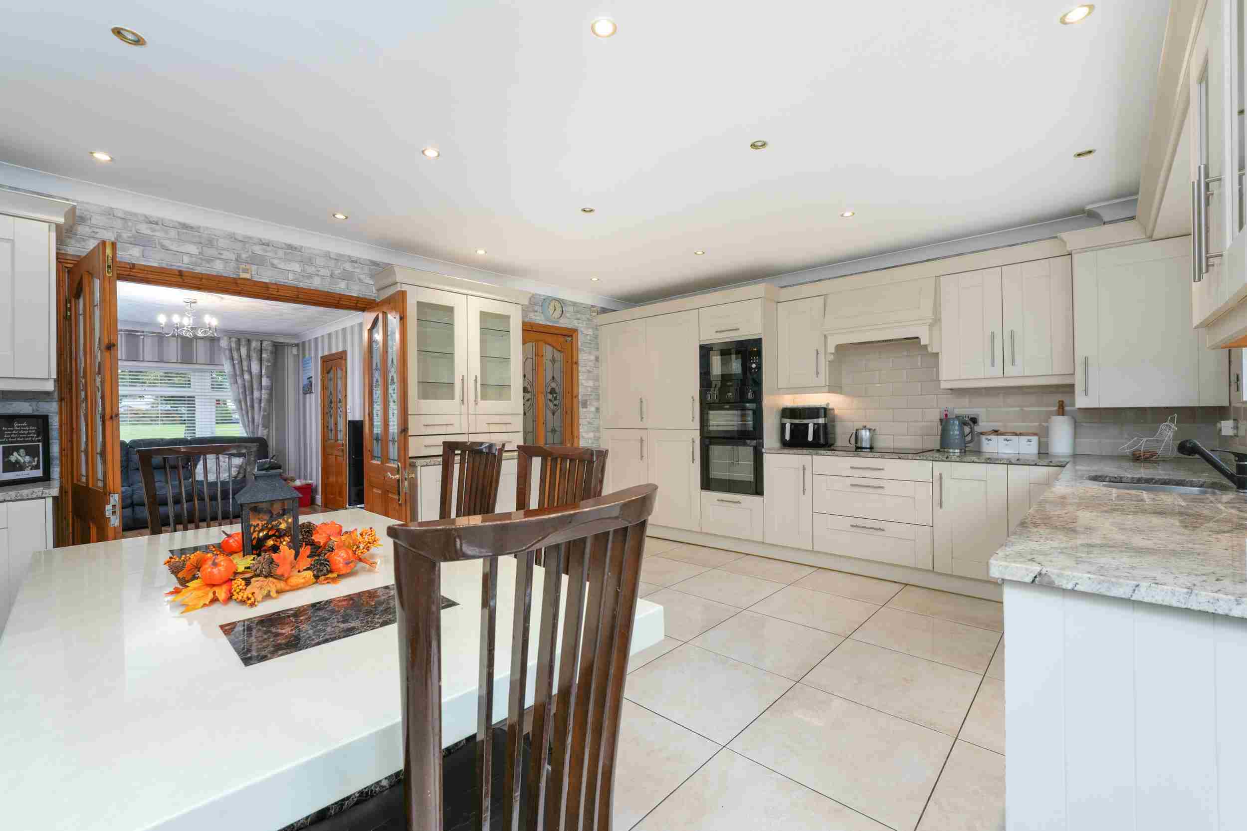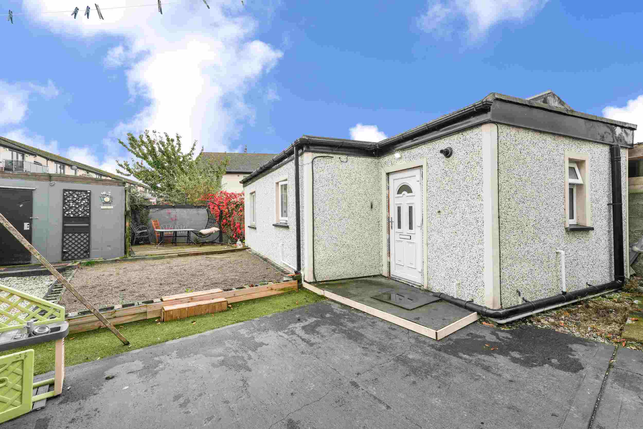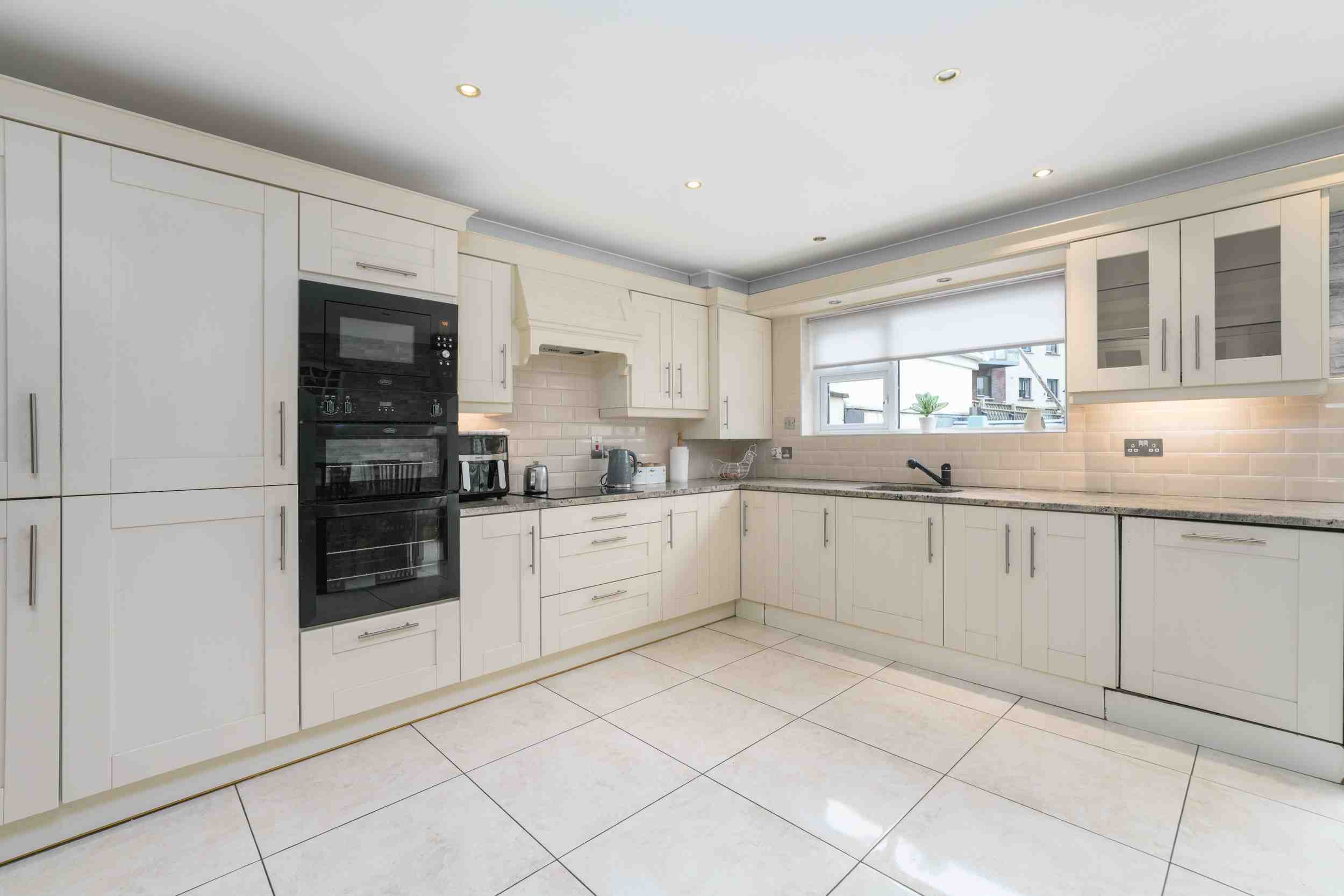 RAY COOKE AUCTIONEERS are proud to present 17 Oldcourt Manor, Firhouse, Dublin 24 — a stunning three-bedroom, three-bathroom semi-detached family home boasting approximately 100 sq.m of beautifully designed living space, complemented by a self-contained two-bedroom, one-bathroom granny flat to the rear. Upon entry, you are greeted by a welcoming hallway featuring an under-stairs vanity closet. The front living room flows through double doors into a beautifully presented, modern, fully fitted kitchen and dining area.