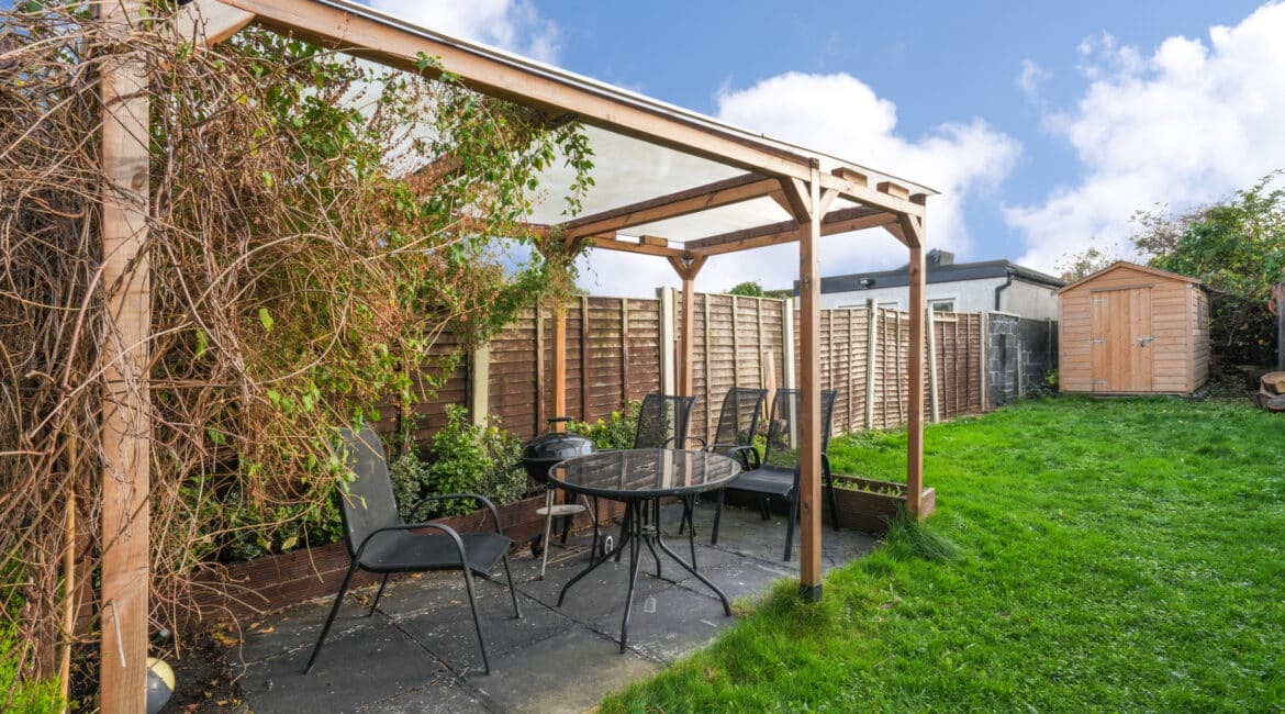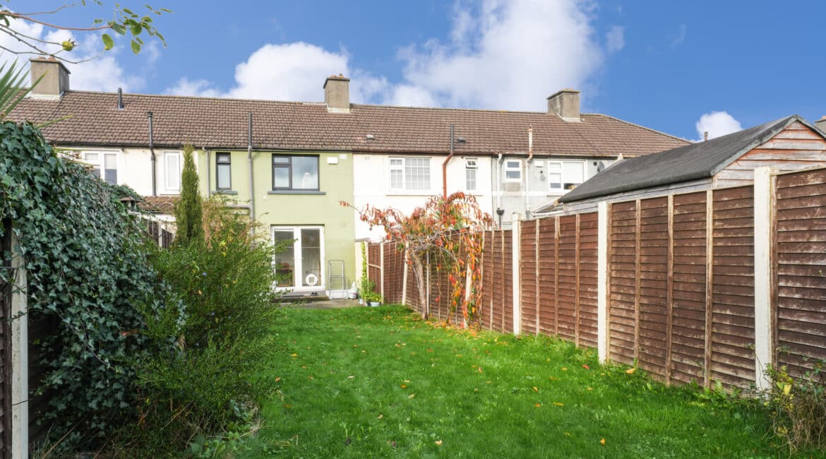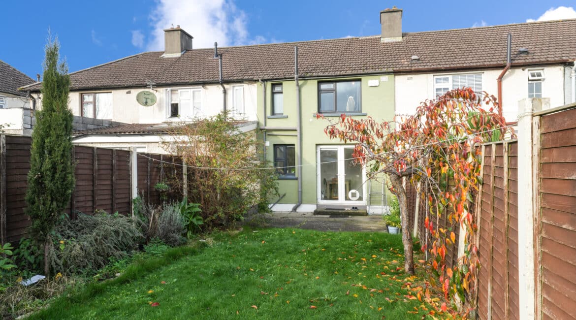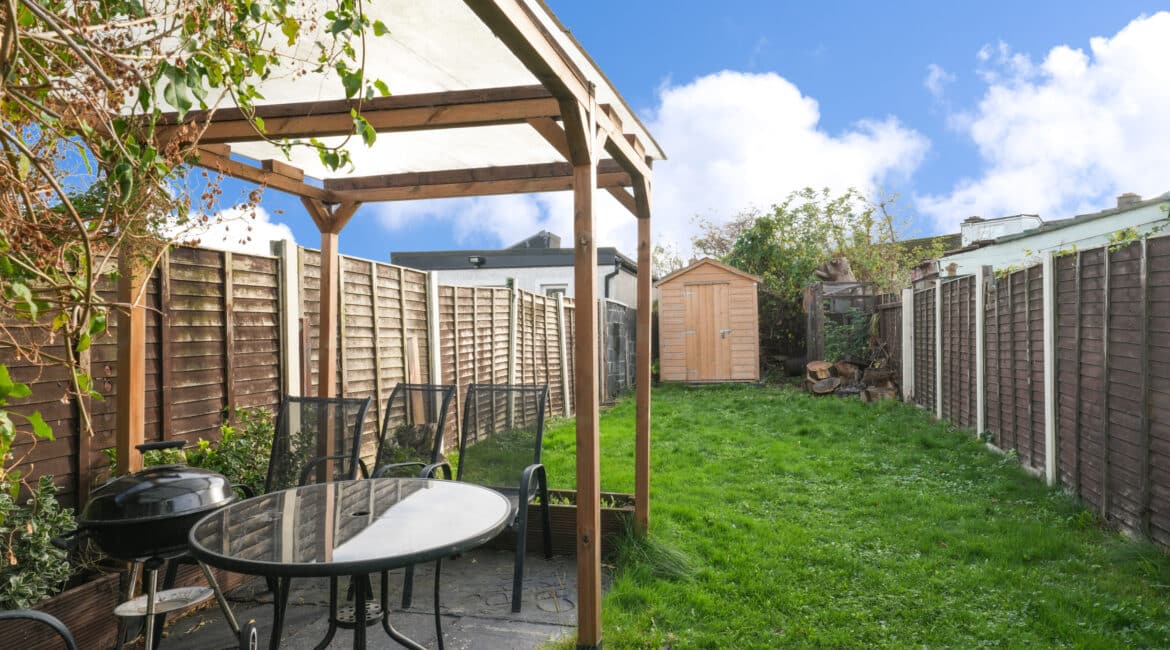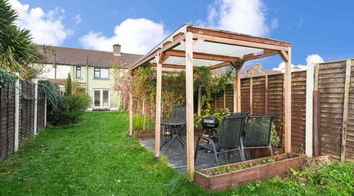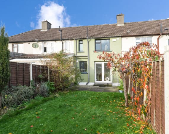 Bright and spacious, No. 175 offers 60 sq. m of beautifully laid-out accommodation. The ground floor comprises an inviting entrance hall, a cosy living room, and a fully fitted kitchen with an open-plan dining area. Upstairs, you’ll find a modern, fully tiled family bathroom and two generous double bedrooms. The kitchen opens onto a large, south-facing rear garden featuring a pergola, storage shed, and mature planting with a well-maintained lawn—perfect for relaxing or entertaining. Presented in superb condition throughout, this property is truly turnkey and ideally situated in a prime location. Additional features include triple-glazed windows, a stylish modern kitchen, upgraded boiler system, built in wardrobes, high-quality flooring throughout, and ample parking. Early viewing is highly recommended—contact Ray Cooke Auctioneers today on 086 8225318 or 01 5541699 for further information or to arrange a viewing!