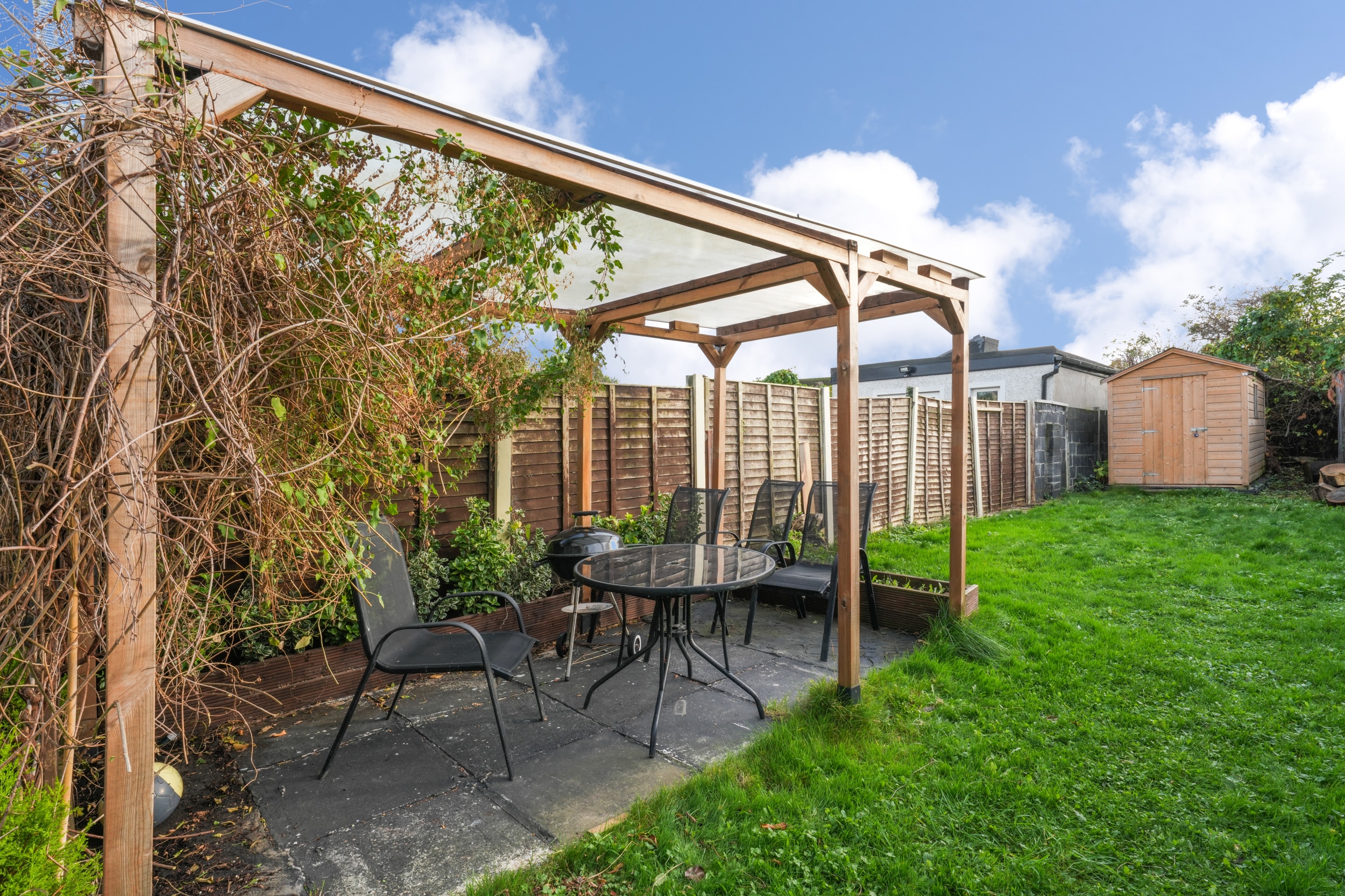 Bright and spacious, No. 175 offers 60 sq. m of beautifully laid-out accommodation. The ground floor comprises an inviting entrance hall, a cosy living room, and a fully fitted kitchen with an open-plan dining area. Upstairs, you’ll find a modern, fully tiled family bathroom and two generous double bedrooms. The kitchen opens onto a large, south-facing rear garden featuring a pergola, storage shed, and mature planting with a well-maintained lawn—perfect for relaxing or entertaining. Presented in superb condition throughout, this property is truly turnkey and ideally situated in a prime location. Additional features include triple-glazed windows, a stylish modern kitchen, upgraded boiler system, built in wardrobes, high-quality flooring throughout, and ample parking. Early viewing is highly recommended—contact Ray Cooke Auctioneers today on 086 8225318 or 01 5541699 for further information or to arrange a viewing!