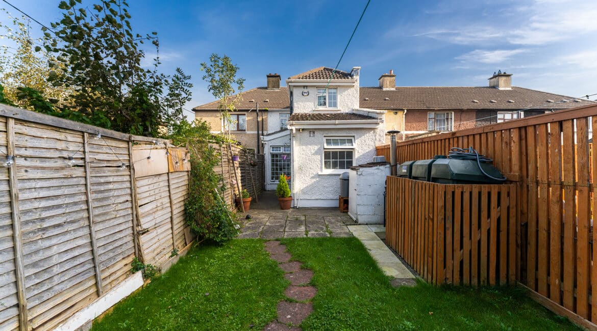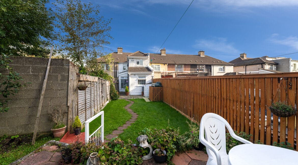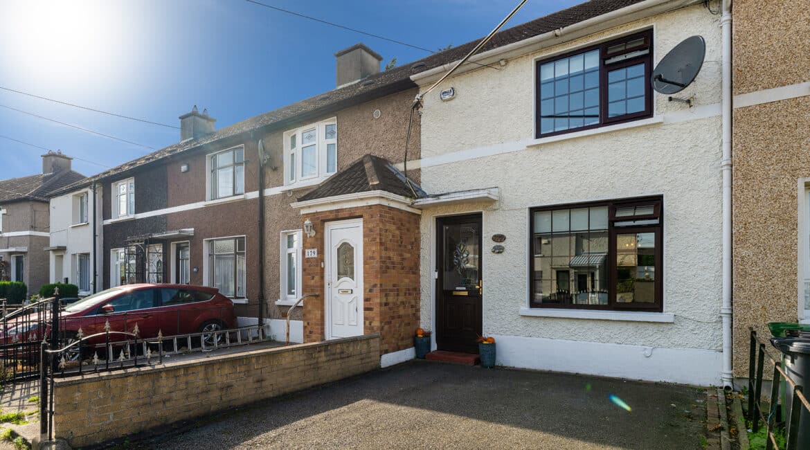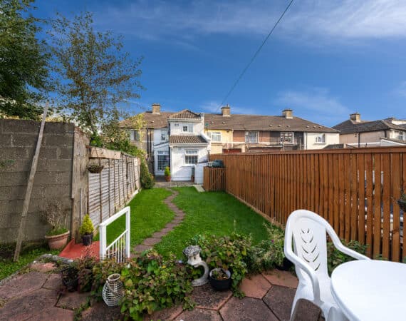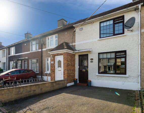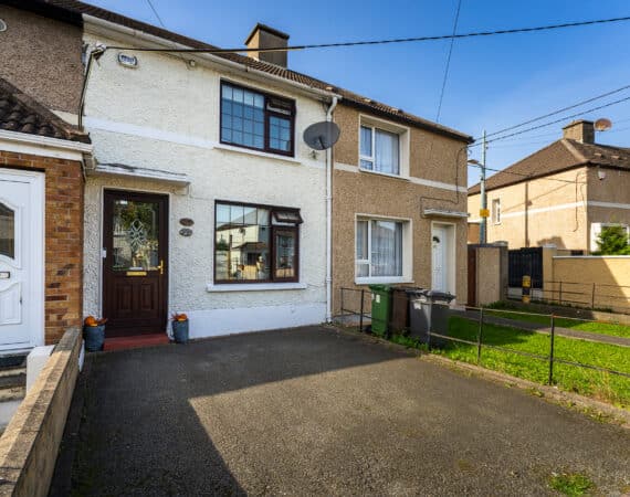 RAY COOKE AUCTIONEERS take great pleasure in introducing no. 177 Thomond Road to the market – a sublime 3 bedroom family home with extra large rear garden. Dublin 10 is well serviced with excellent public transport links including the 18, 25N, 40, 76, 76A, 79, 79A bus routes. The Chapelizod bypass & M50 motorway are both very easily accessed and Liffey Valley Shopping Centre is within arm’s reach. Ballyfermot offers a range of excellent facilities including a choice of well esteemed primary & secondary schools along with Ballyfermot College of Further Education, a variety of sports & leisure facilities and local shops + convenience stores. Bright and spacious internal living accommodation of c. 94 sq m c. 1,011 sq ft comprises of entrance hallway, lounge, dining/kitchen, utility space, main family bathroom, three double bedrooms and second bathroom. To the rear is a sunny garden with lawn pation, mature planting and block built shed. This fine property is presented in very good condition having been immaculately maintained over the years. The long list of additional features includes top quality blinds & flooring, built in storage and off street parking for multiple cars. One not to be missed – early viewing highly advised!