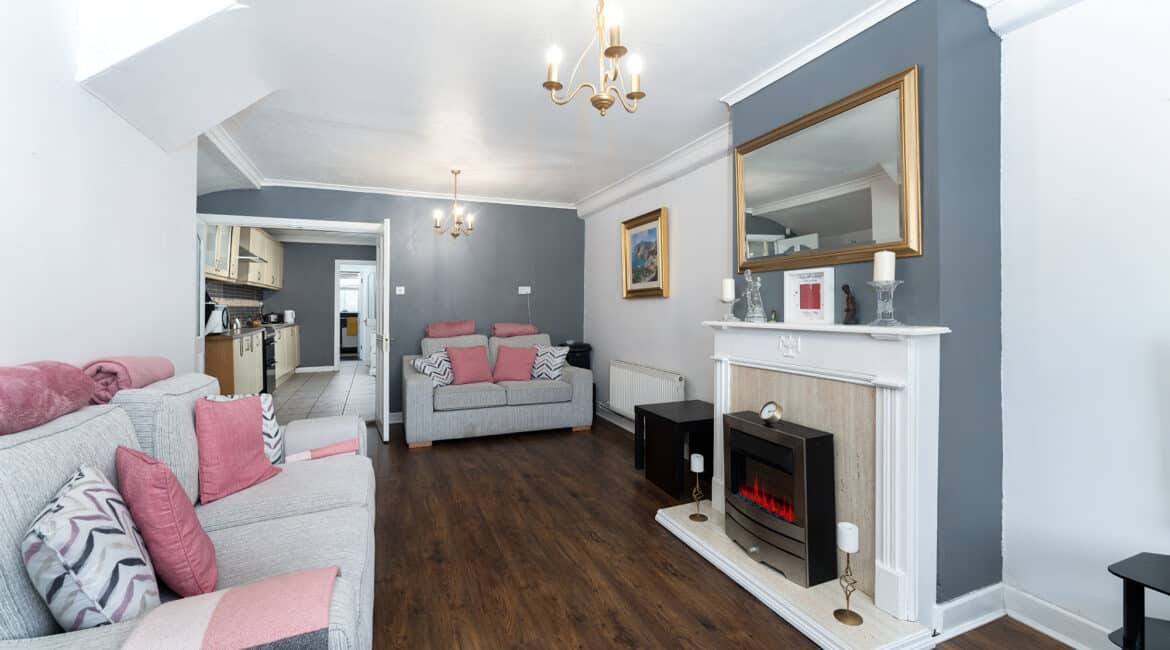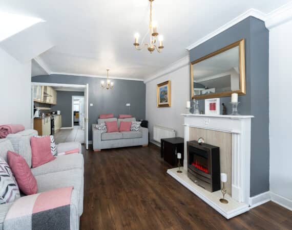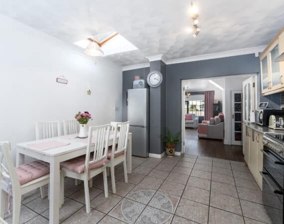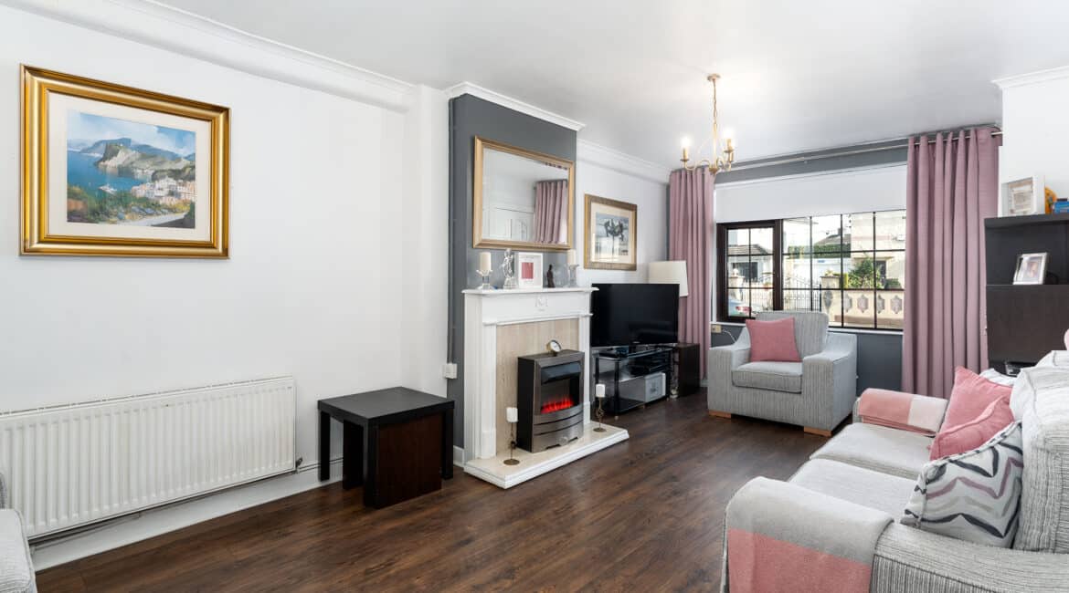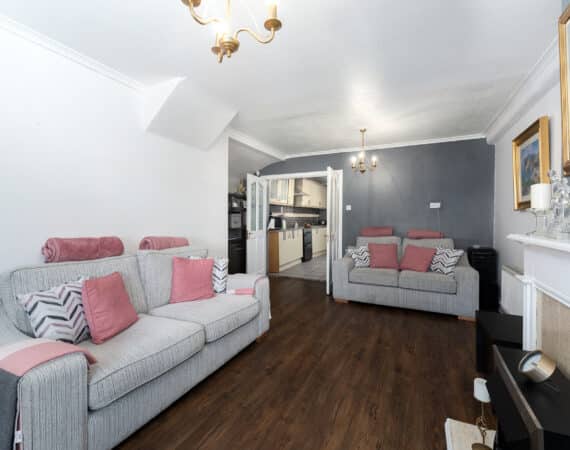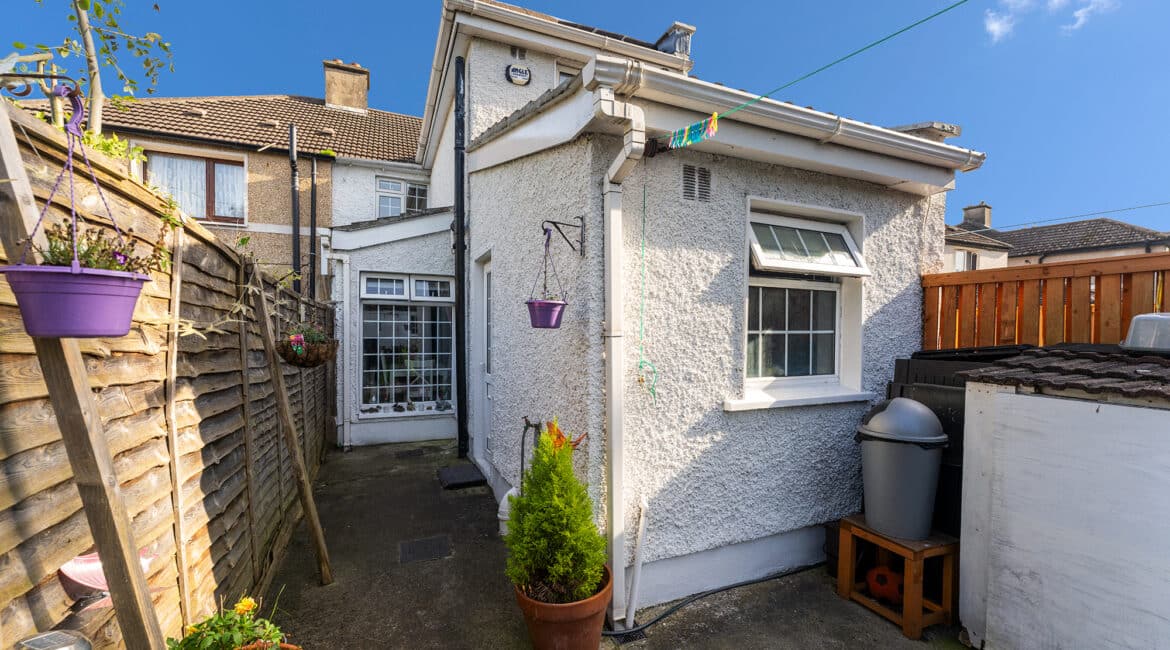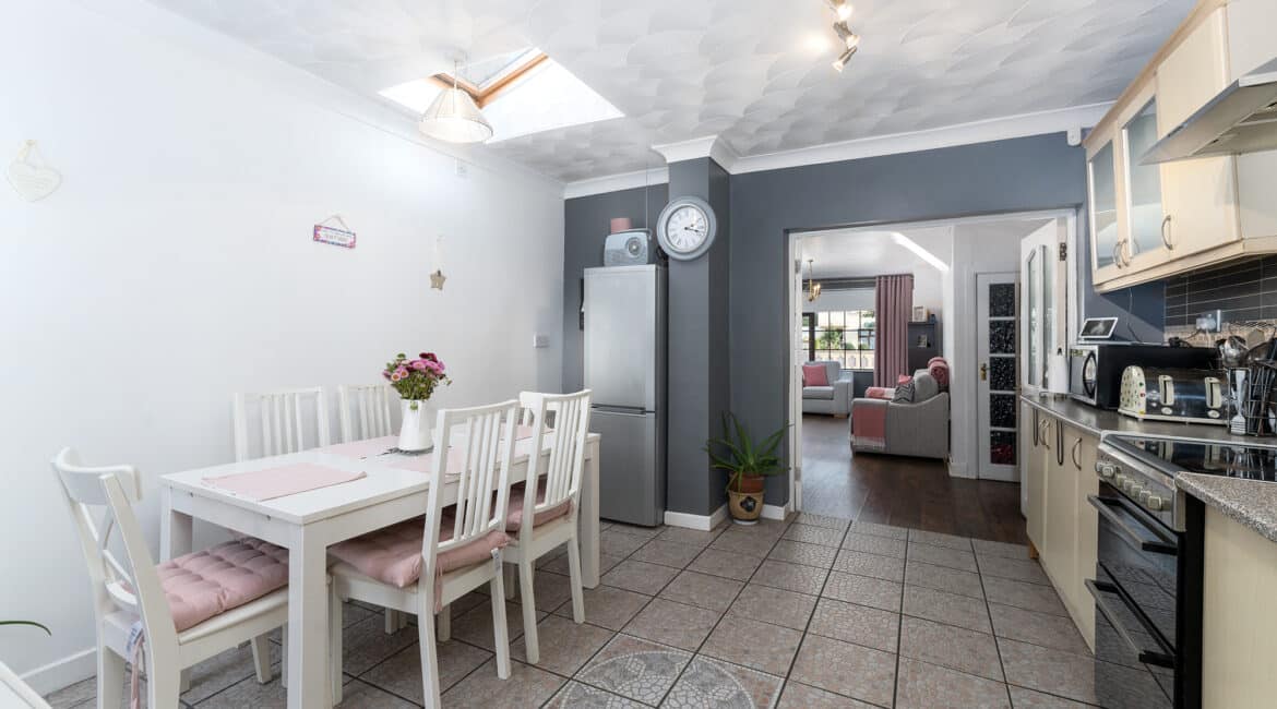 RAY COOKE AUCTIONEERS take great pleasure in introducing no. 177 Thomond Road to the market – a sublime 3 bedroom family home with extra large rear garden. Dublin 10 is well serviced with excellent public transport links including the 18, 25N, 40, 76, 76A, 79, 79A bus routes. The Chapelizod bypass & M50 motorway are both very easily accessed and Liffey Valley Shopping Centre is within arm’s reach. Ballyfermot offers a range of excellent facilities including a choice of well esteemed primary & secondary schools along with Ballyfermot College of Further Education, a variety of sports & leisure facilities and local shops + convenience stores. Bright and spacious internal living accommodation of c. 94 sq m c. 1,011 sq ft comprises of entrance hallway, lounge, dining/kitchen, utility space, main family bathroom, three double bedrooms and second bathroom. To the rear is a sunny garden with lawn pation, mature planting and block built shed. This fine property is presented in very good condition having been immaculately maintained over the years. The long list of additional features includes top quality blinds & flooring, built in storage and off street parking for multiple cars. One not to be missed – early viewing highly advised!