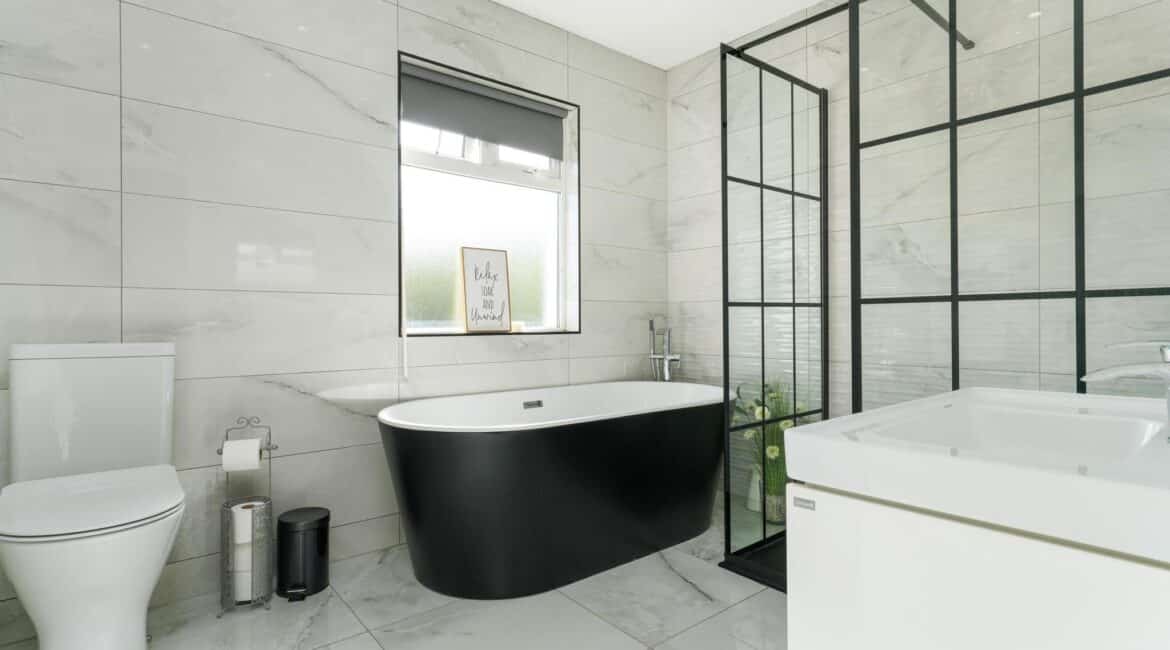 – Main family bathroom fully tiled