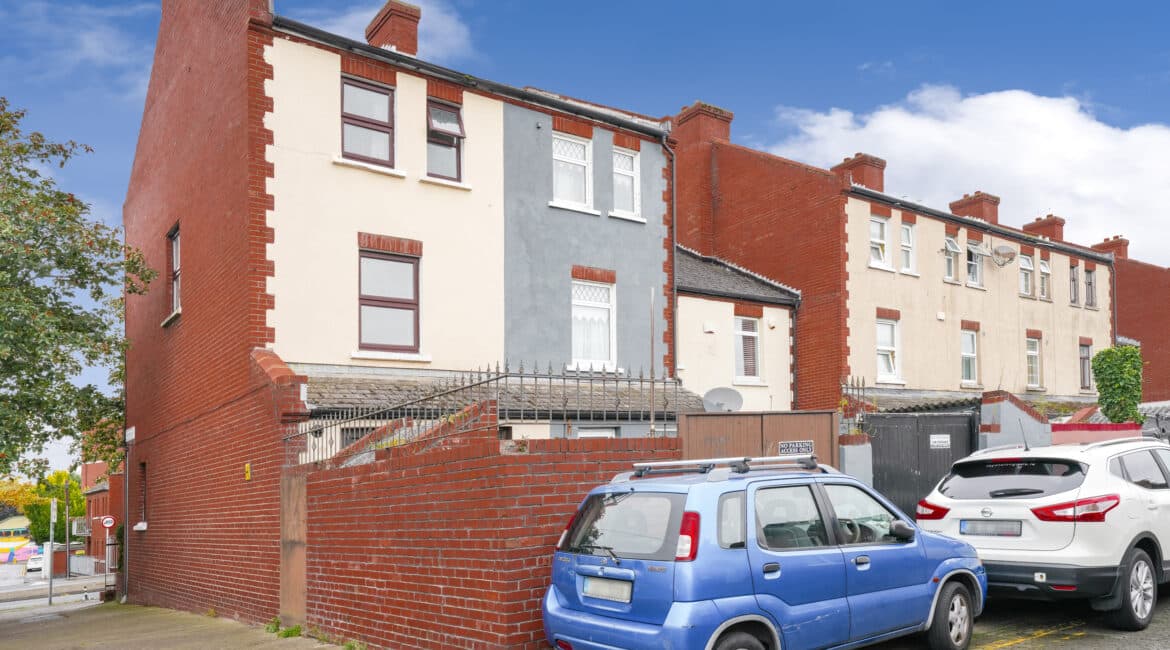 Inside, this completely versatile three-storey property proposes a bright space to work, relax and entertain. A c.95 sq.m end of terrace house complying of three bedrooms, two bathrooms, spacious kitchen and an upstairs living area. Also benefitting from a private rear courtyard, off street parking and an additional storage unit. With a little reconfiguration, the layout holds excellent potential to accommodate up to five bedrooms, making it an ideal choice for growing families or investment opportunity.