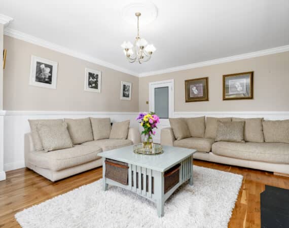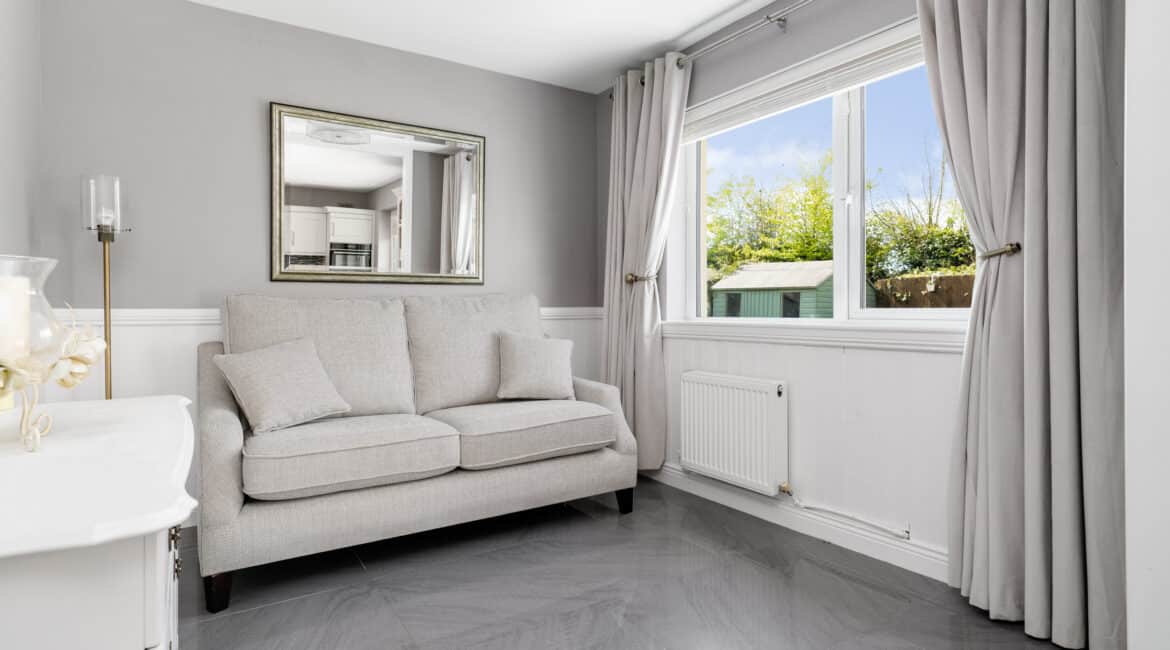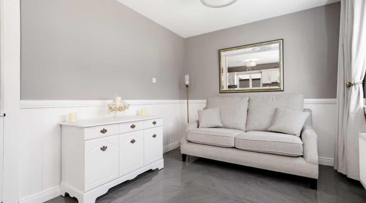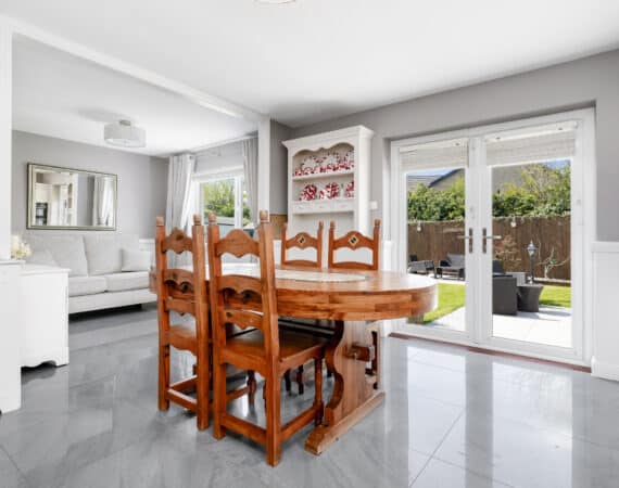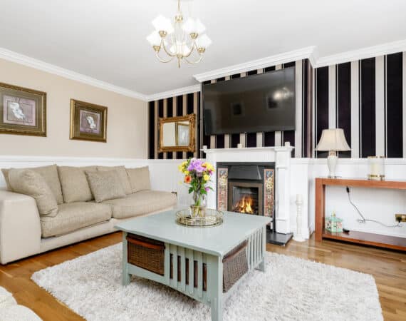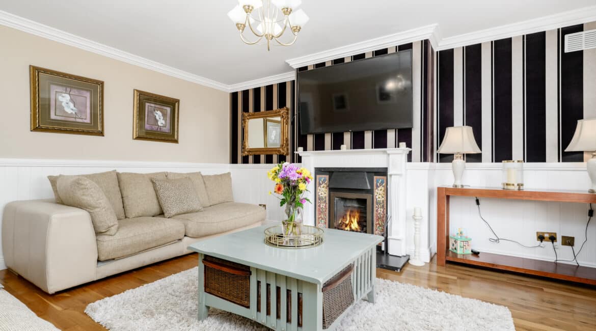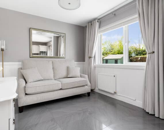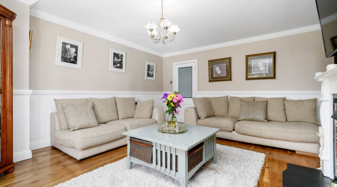 The home itself is exceptionally well-proportioned throughout, designed for growing families to maximise space comfort and convenience for busy households. Bright, airy & most spacious internal living accommodation of c 111 sqm compromises of an entrance hallway with stylish panelling throughout, large living room with feature fireplace, fully fitted kitchen/dining area, separate utility room/pantry, three double bedrooms (one master ensuite) with built in wardrobes and fully tiled main family bathroom. The 4th bedroom here has been opened out to an extra living space but could easily be put back into a 4th room. The attic has a stira stairs with wood flooring making it perfect for additional storage but offers a fantastic opportunity to convert if that’s what someone is looking to do.