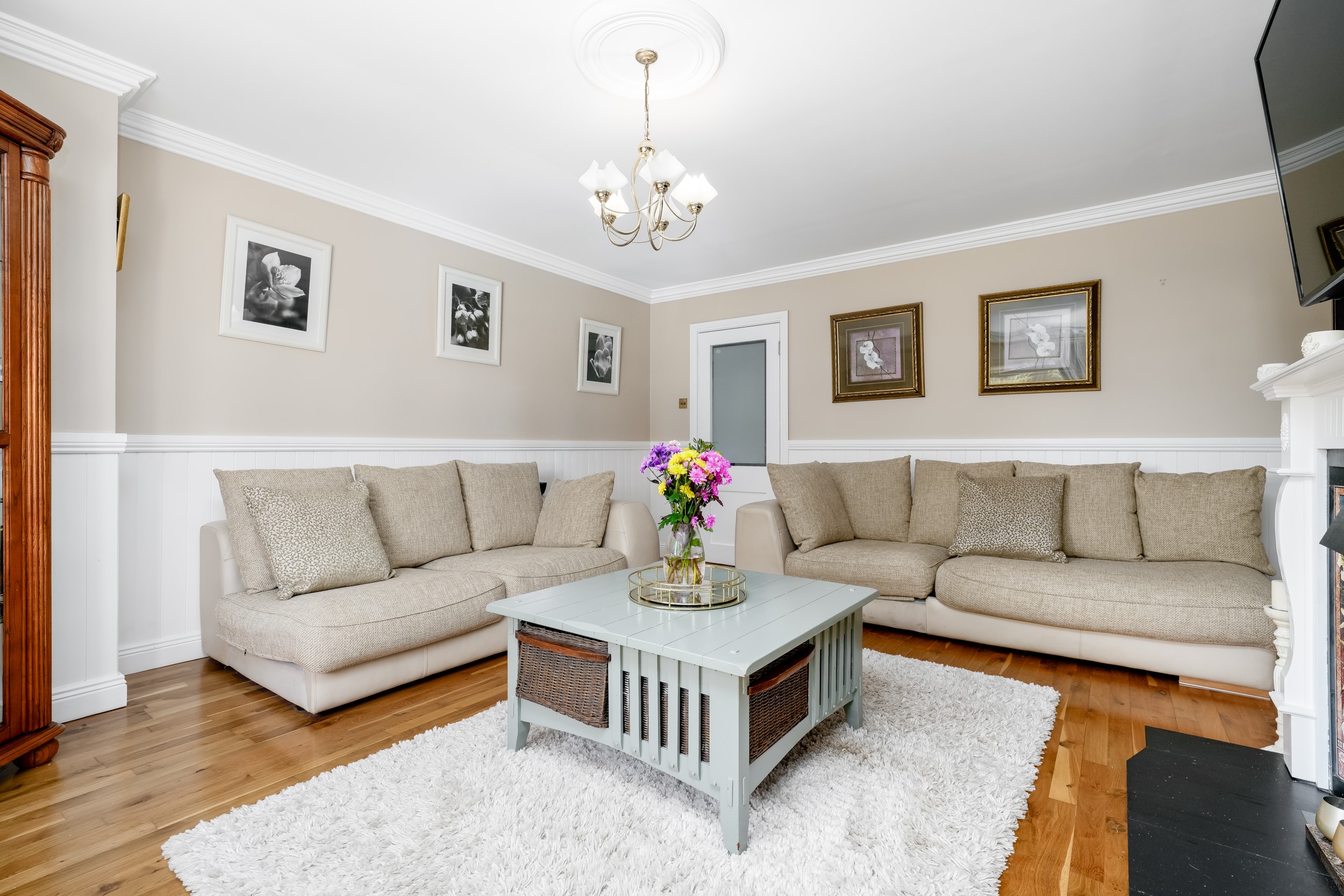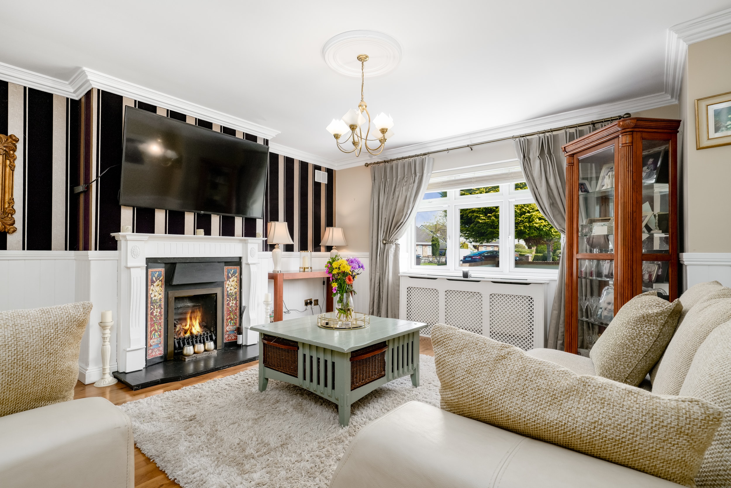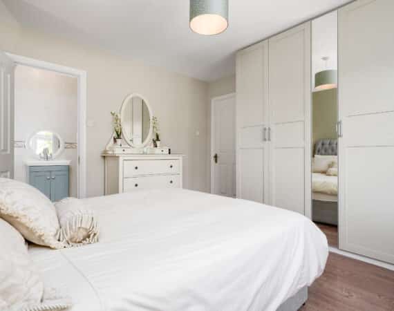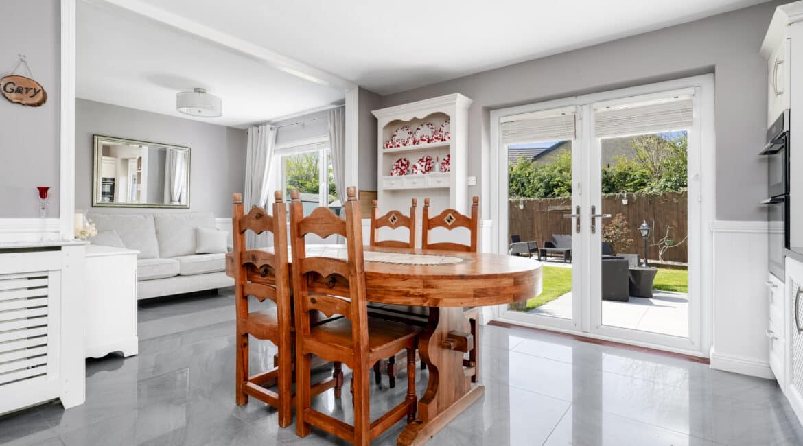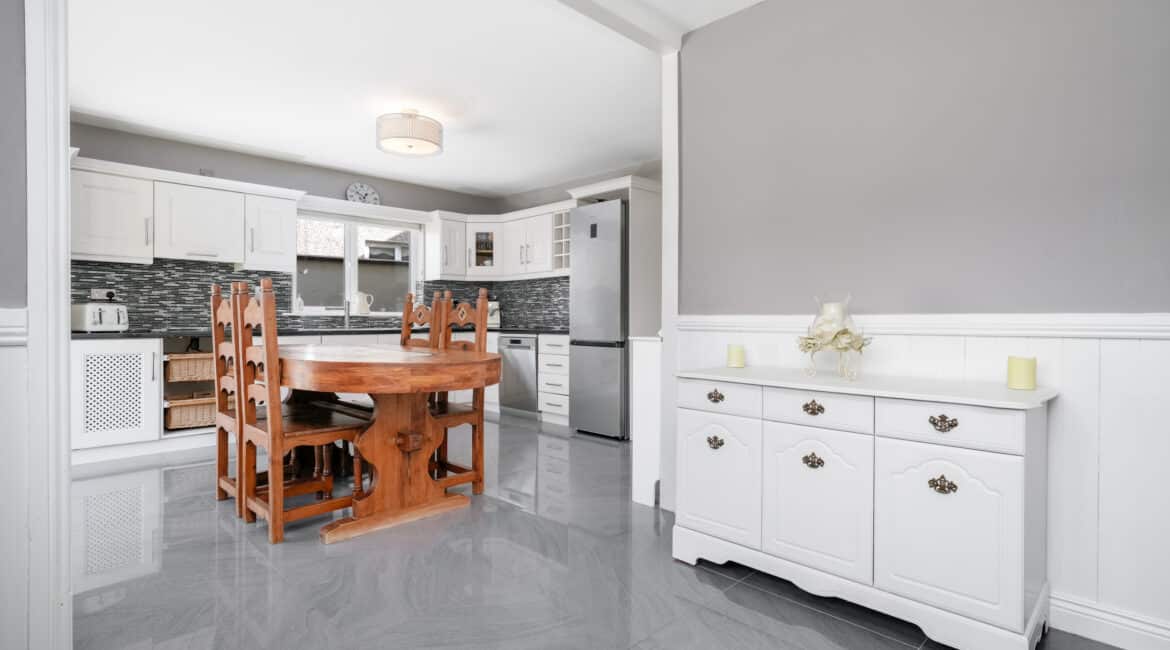 The home itself is exceptionally well-proportioned throughout, designed for growing families to maximise space comfort and convenience for busy households. Bright, airy & most spacious internal living accommodation of c 111 sqm compromises of an entrance hallway with stylish panelling throughout, large living room with feature fireplace, fully fitted kitchen/dining area, separate utility room/pantry, three double bedrooms (one master ensuite) with built in wardrobes and fully tiled main family bathroom. The 4th bedroom here has been opened out to an extra living space but could easily be put back into a 4th room. The attic has a stira stairs with wood flooring making it perfect for additional storage but offers a fantastic opportunity to convert if that’s what someone is looking to do.