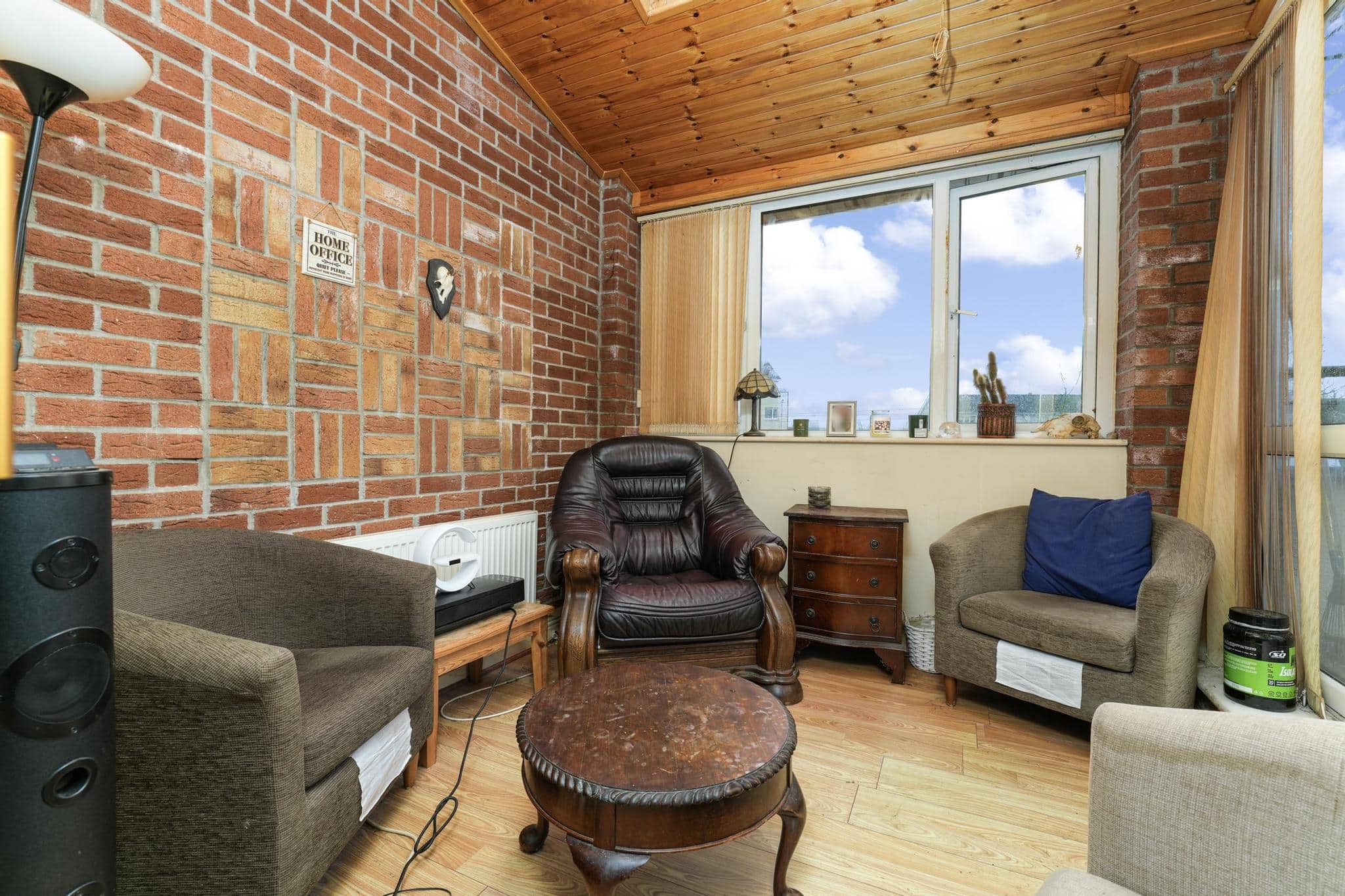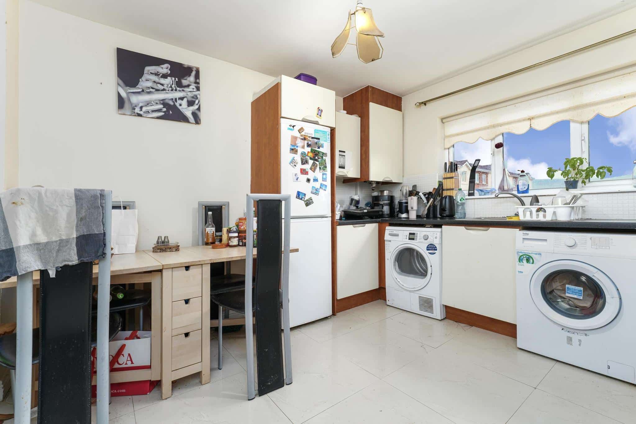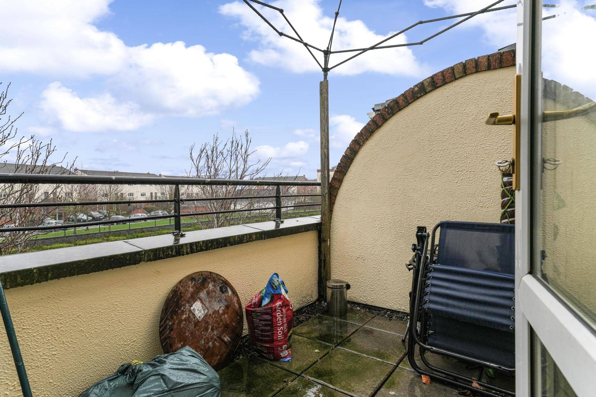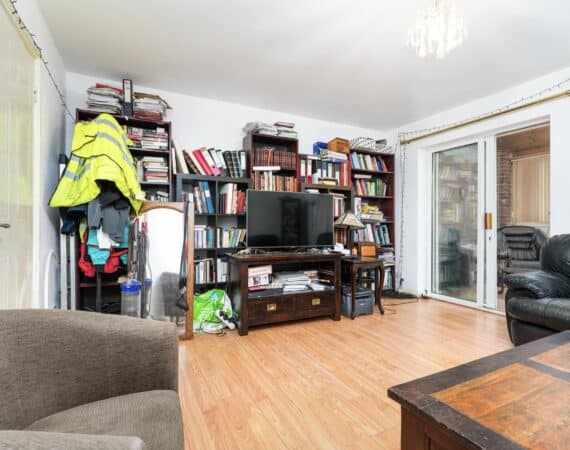On the ground floor, the property features a bright and functional kitchen space, downstairs toilet & large living area leading out to a sunroom and private balcony area, adding valuable outdoor space.