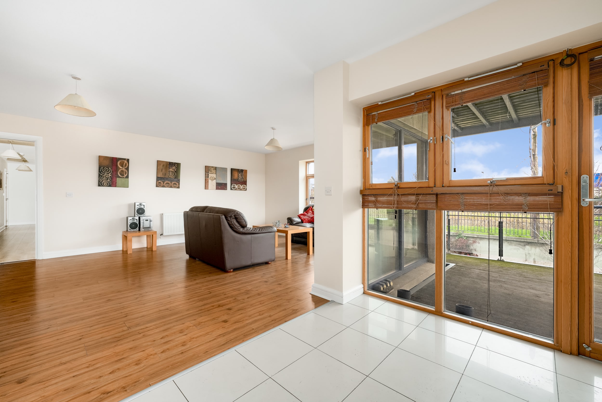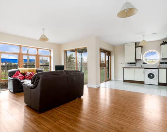 Internal living space is bright, airy, and impressively proportioned. Upon entering, you are greeted by a welcoming hallway leading to the heart of the home: a massive open-plan living, dining, and kitchen area. The kitchen comes fully fitted with modern appliances and ample countertop space. This expansive living area opens directly onto a large south-facing balcony, which acts as a sun-drenched extension of the home.