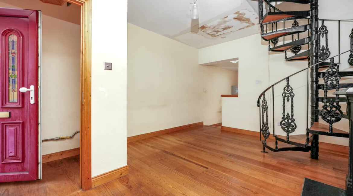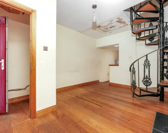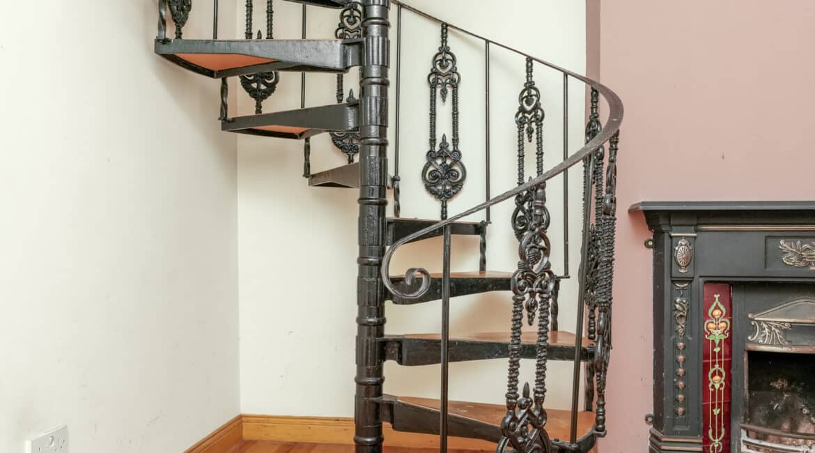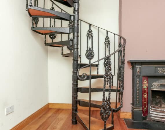 - Spiral staircase leading to upper floor