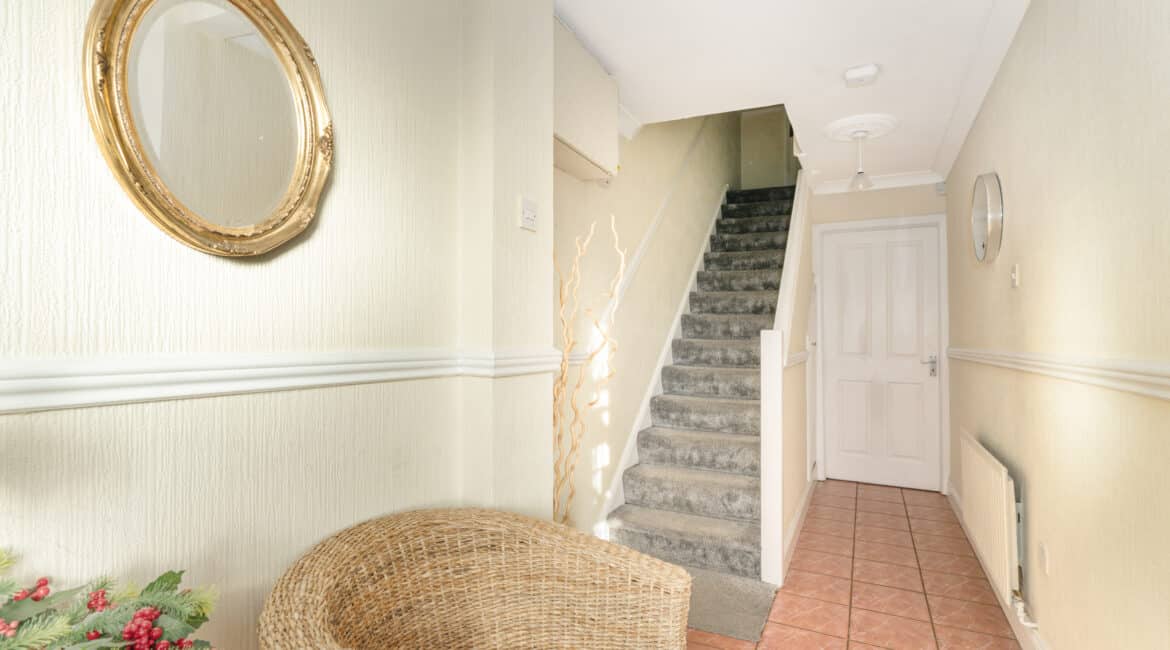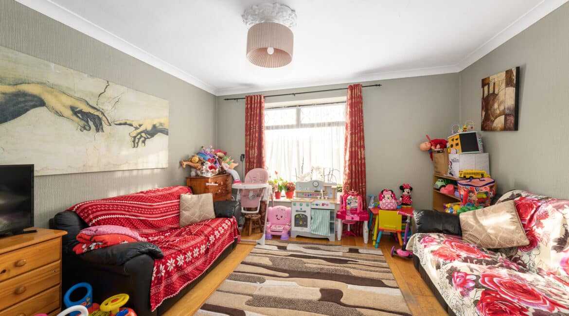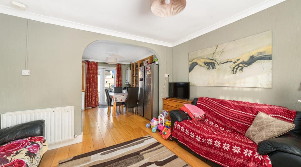 The rear boasts an extra large sunny garden while you are adjacent to a large green. The front offers off street parking for multiple cars and boasts an ideal cul-de-sac position with minimal passing traffic.