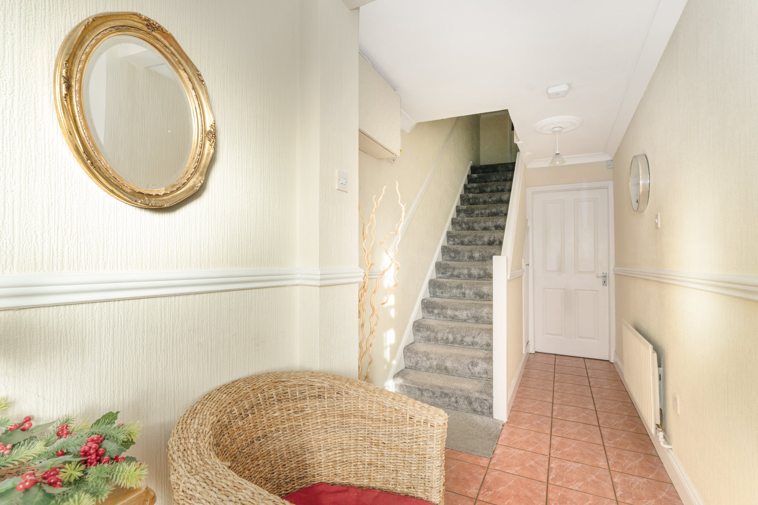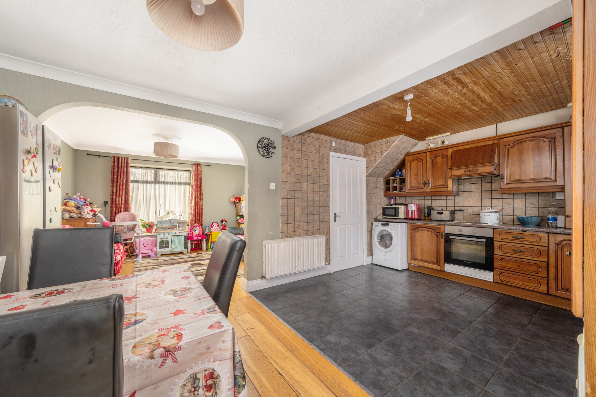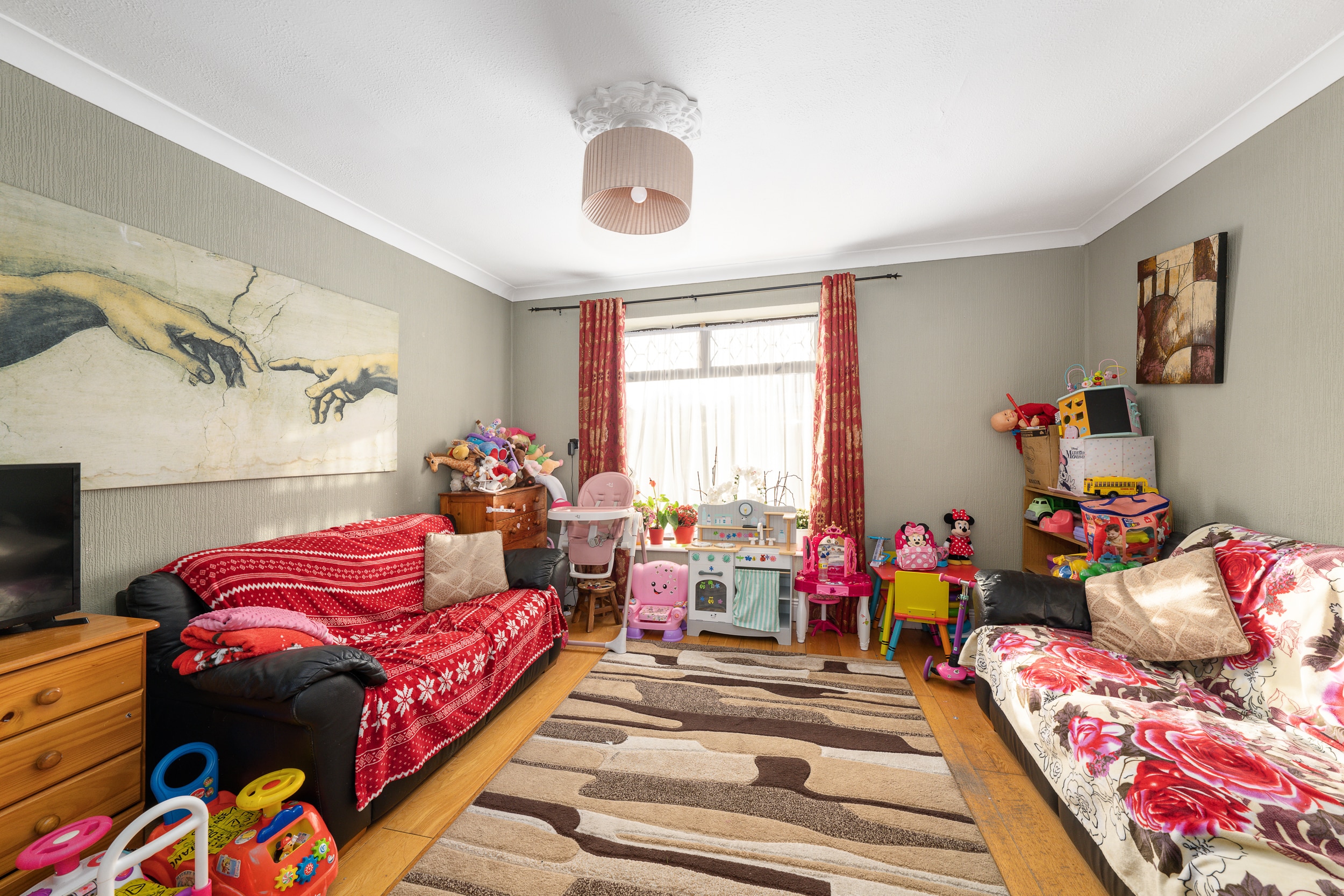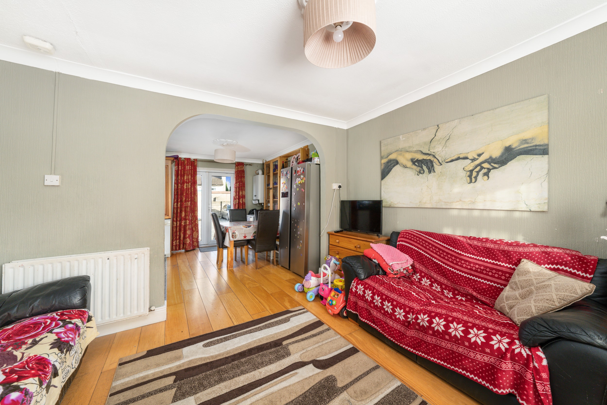The rear boasts an extra large sunny garden while you are adjacent to a large green. The front offers off street parking for multiple cars and boasts an ideal cul-de-sac position with minimal passing traffic.