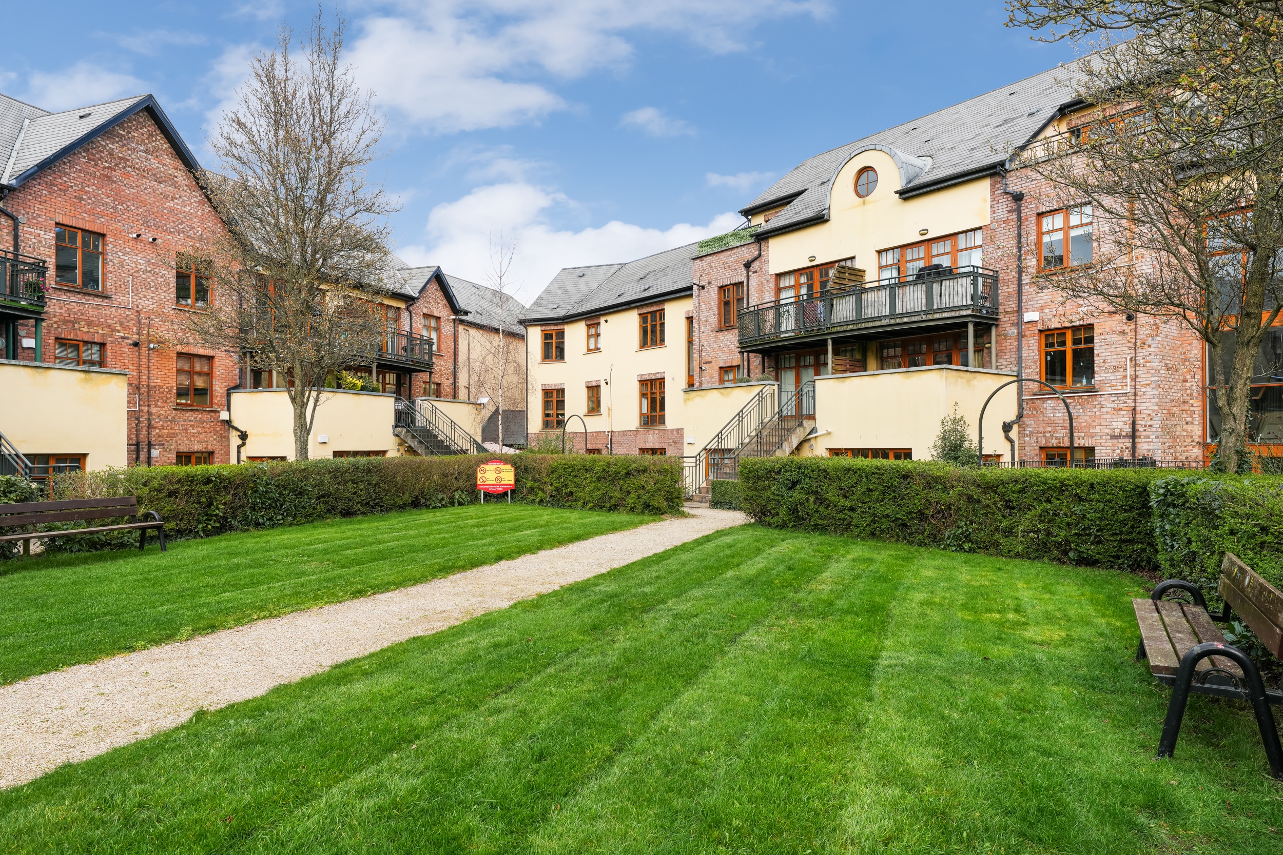 Bright and spacious, this superb property extends to approximately 76 sq.m. The accommodation comprises an inviting entrance hall, a fully fitted kitchen, and a generous living/dining area opening onto a sunny private patio with garden views, overlooking a beautifully maintained communal courtyard. There are two double bedrooms (one with an en-suite) and a main family bathroom. No. 26 is presented in excellent condition and offers a perfect blank canvas for its new owners. Additional features include a gas boiler, an impressive B2 energy rating, built-in wardrobes, and well-proportioned living space throughout. The property also benefits from its own door access, a private sunny rear patio, and excellent privacy and security, along with access to the attractive communal courtyard. Ideally suited to first-time buyers, downsizers, and investors, early viewing is highly recommended!!