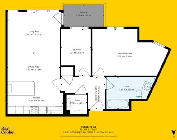 - Southerly facing private balcony
