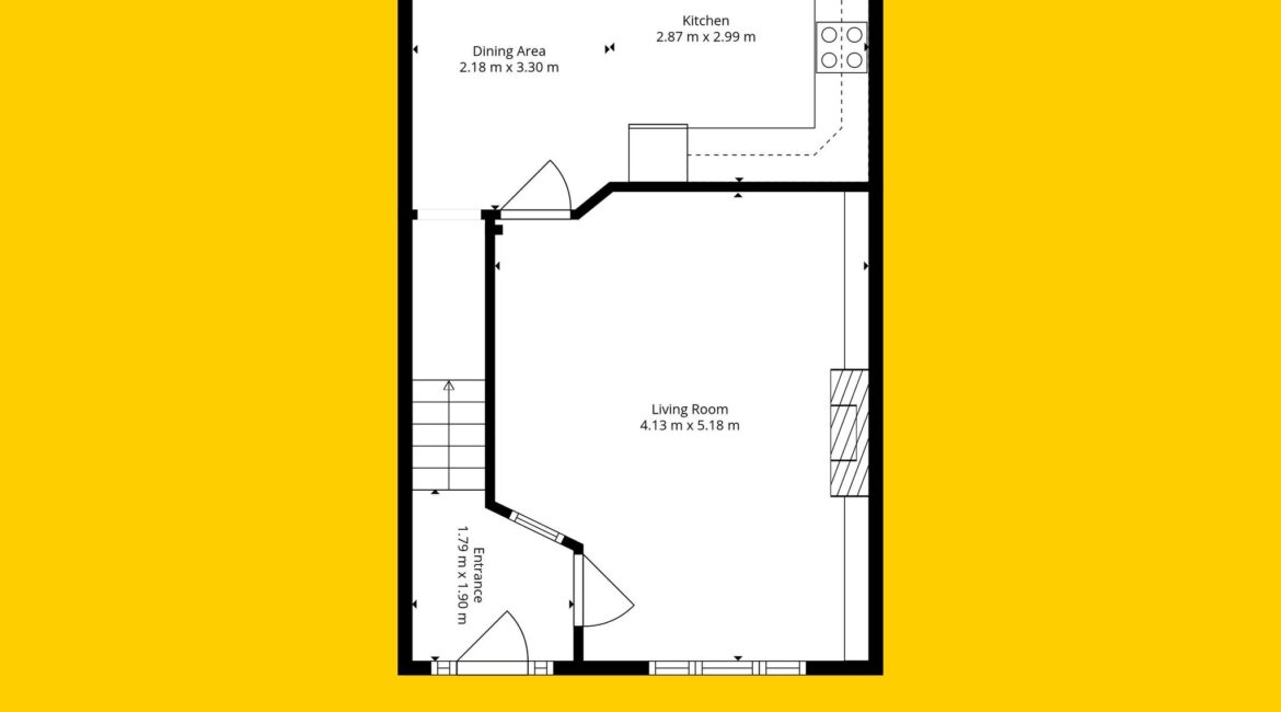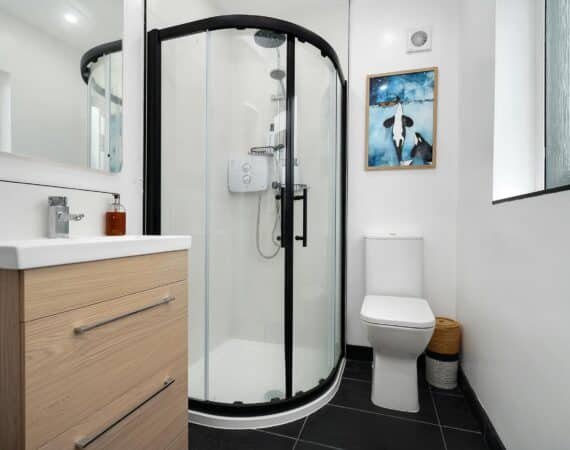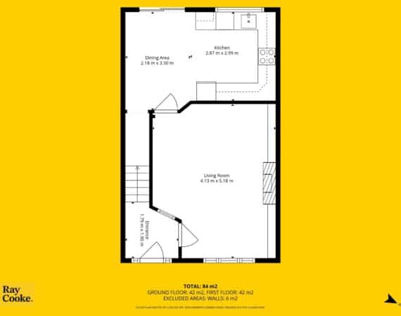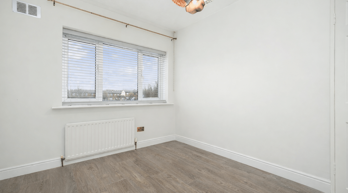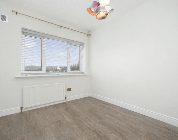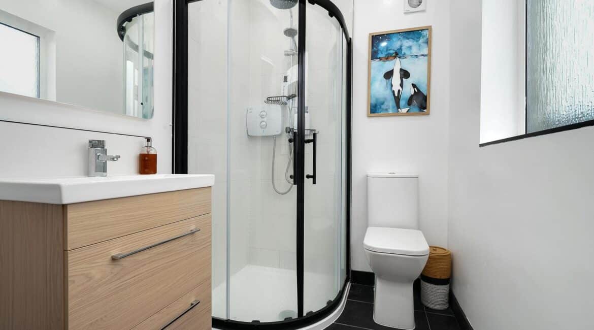The ground floor layout is both practical and stylish. To the front, the large living room offers a warm and inviting space with bespoke built in sheves. Just beyond, the open-plan kitchen and dining area spans the width of the house and is flooded with natural light thanks to the large rear windows. The kitchen is well-appointed with modern cabinetry, ample counter space, and integrated appliances — ideal for cooking and casual dining. This area seamlessly connects to the low maintenance rear garden, a private outdoor retreat thats not overlooked.