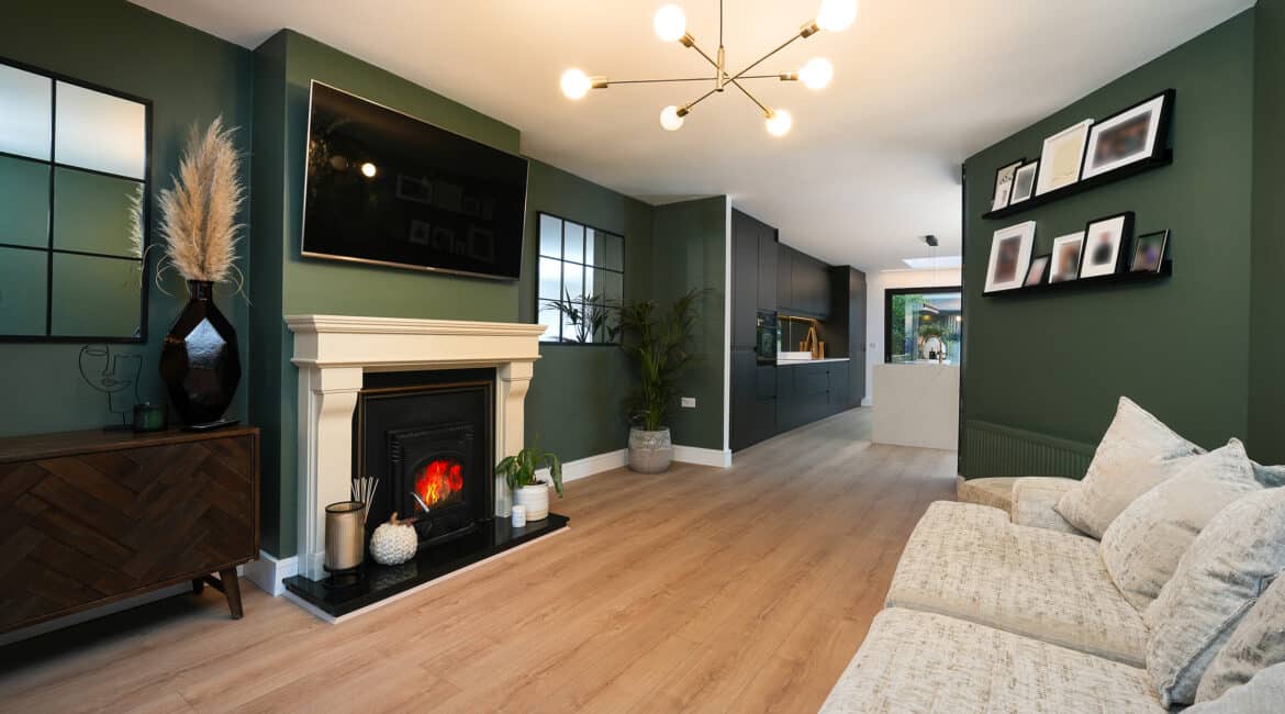 – Large living room with stove fireplace