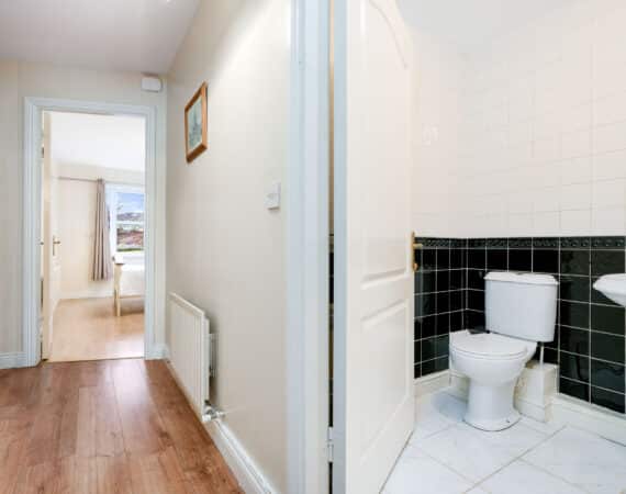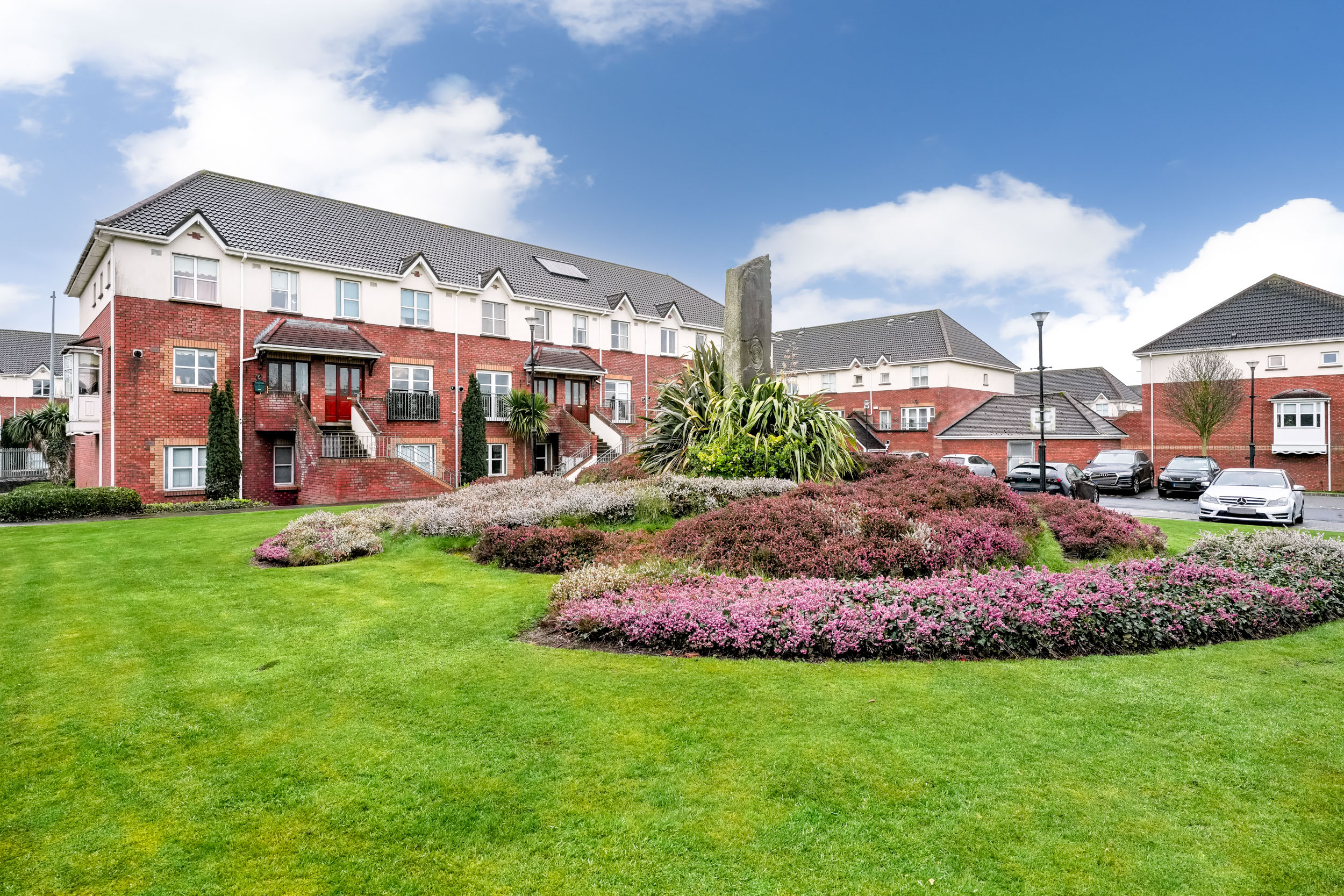 There are two generous double bedrooms, both with built-in wardrobes, with the main bedroom benefiting from an en-suite. A fully tiled main bathroom serves the rest of the apartment. Number 3 benefits from its own private entrance along with a designated surface parking space. The development is well maintained and offers a quiet residential setting.