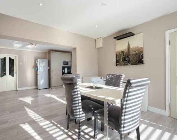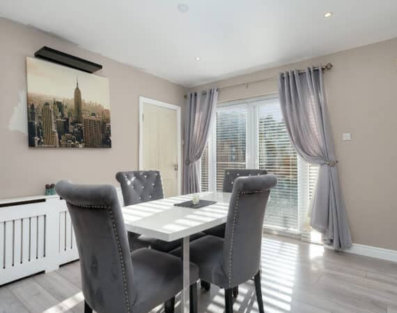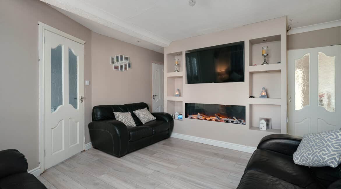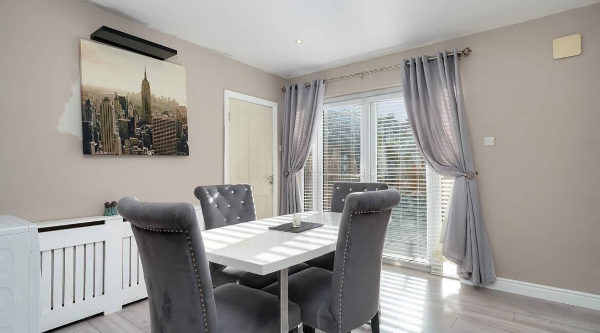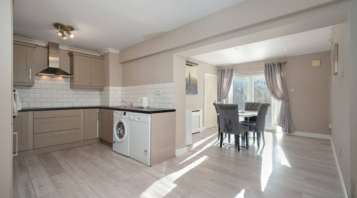 RAY COOKE AUCTIONEERS are delighted to present this superb three-bedroom, two-bathroom mid terrace family home to the market, located in the Foxdene development, Lucan, Co. Dublin. This beautiful property has been tastefully upgraded throughout and offers bright, modern living accommodation in a convenient location. The ground floor comprises a welcoming entrance hallway leading into a cosy lounge area complete with a feature display fireplace. To the rear, you’ll find a stunning open-plan kitchen and dining area with a fully fitted modern kitchen and access to a private, low-maintenance recently patioed garden, ideal for outdoor dining and entertaining. A convenient guest bathroom completes the downstairs accommodation. Upstairs hosts three well-proportioned bedrooms, including two spacious doubles and a single bedroom, all complemented by a newly fitted, fully tiled family bathroom. No. 3 Foxdene Green has been maintained to an excellent standard by its current owners and is sure to appeal to a wide range of buyers, from first-time purchasers to growing families and investors alike. Ideally positioned within easy reach of Liffey Valley Shopping Centre, Lucan Village, and a selection of local schools, shops, and parks. Transport links are excellent, with frequent Dublin Bus routes and the M50 and N4 road networks nearby. Early viewing is highly advised, call RAY COOKE AUCTIONEERS today on 086 828 9950 or 01 554 1699 for more details.