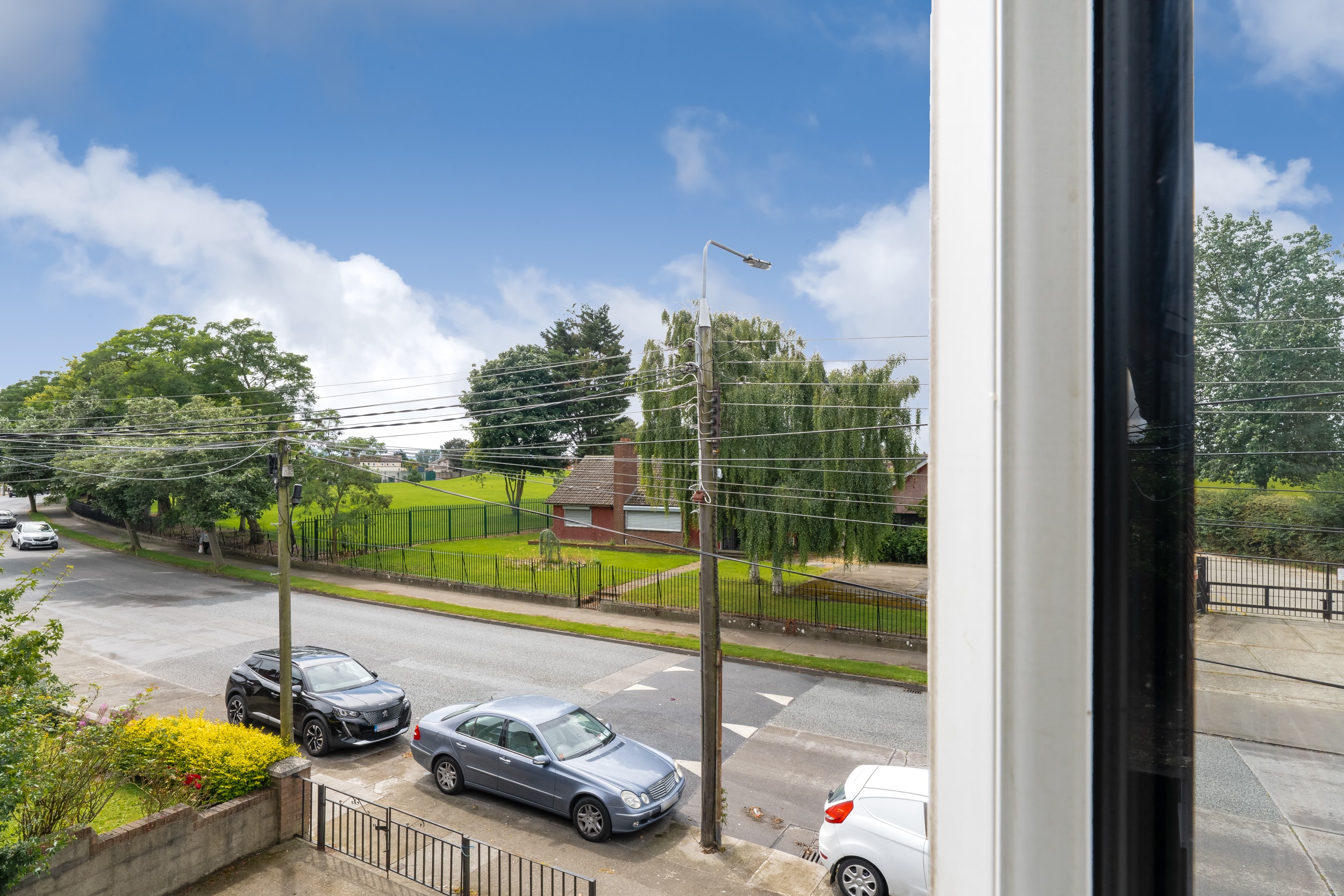 – Overlooking a large green area