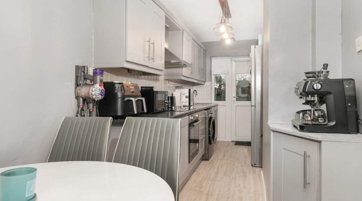 Boasting c. 70 sq.m of well-proportioned accommodation, the ground floor comprises an entrance opening directly into a bright living room, leading through to a well-appointed kitchen/dining area. Upstairs you will find a family bathroom, a single bedroom, and two generous double bedrooms.
