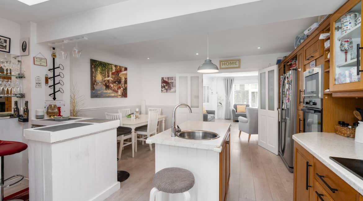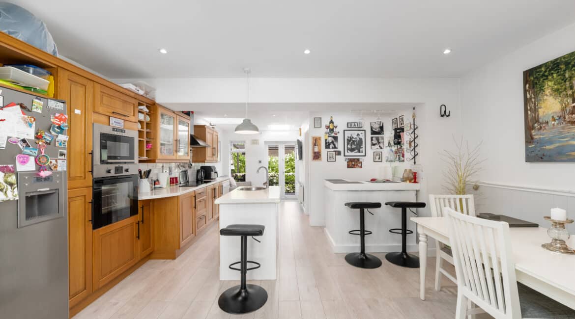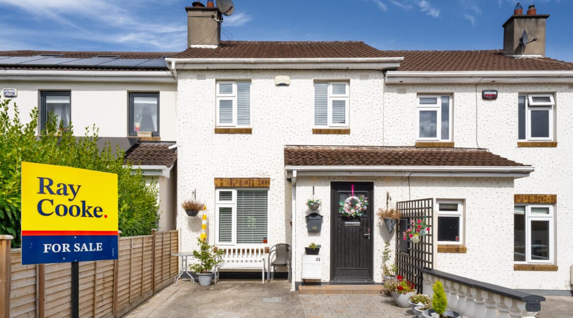 RAY COOKE AUCTIONEERS proudly present to the market this immaculately presented, extended and perfectly located mid-terrace property with the additional benefit of a converted attic. Situated in a quiet cul de sac of Glenaulin, Chapelizod, Located just minutes from the heart of the ever sought after Chapelizod Village in Dublin 20, this is arguably one of Dublin 20’s most sought-after locations. A host of local amenities can be found on your doorstep including transport links, shopping facilities, parks and recreational facilities to name a few. From a transport point of view, Chapelizod is located less than 6km from the city centre, a short distance to the N4/M4/M50 road networks and has access to public transport routes at the front of the development. Bright, open and spacious internal living accommodation of c. 130 sqm can be found here and in brief consists of; Entrance hall, lounge, open plan kitchen/family/diner and also a utility and downstairs shower room to the ground floor. upstairs you will find two double bedrooms, a refitted family bathroom and a study, formerly the 3rd bedroom which now has stair case access to the converted attic. Externally to the rear you will find a split level, well presented court yard style garden with a high degree of privacy and covered seating area whilst the front offers a driveway for off road parking. No. 33 is presented in turn-key condition throughout having been lovingly maintained by its current owners and is prime for any first-time buyer looking to get on the property ladder or any family looking to move into this highly sought-after estate. Further benefits here include gas fired central heating, double glazed windows and it tucked away in a secluded spot in this highly desirable development. Early viewing is highly advised, you can contact RAY COOKE AUCTIONEERS to schedule a viewing today.