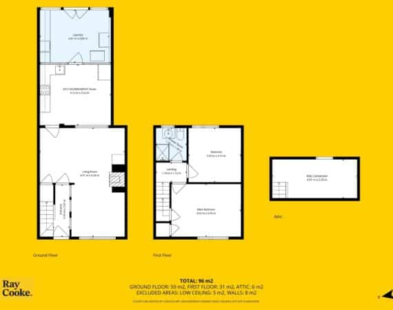 Extending to approximately 105 sq.m. of well-proportioned internal accommodation, the property benefits from a rear extension currently in use as a practical utility room, along with a converted attic space providing valuable additional accommodation suitable for a home office, guest room, or hobby space.